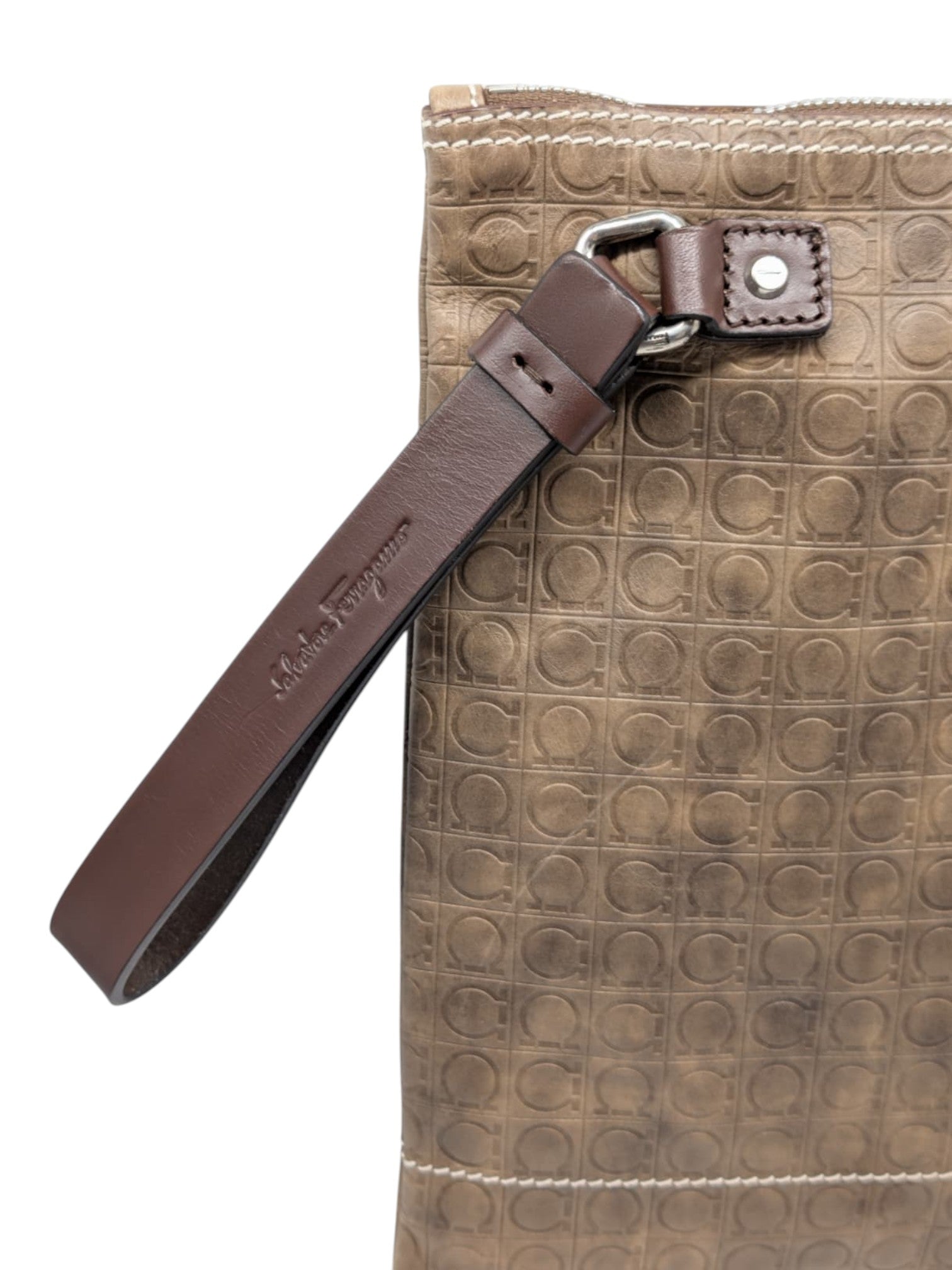 Salvatore Ferragamo Gancini Logo-Embossed Clutch Bag/Pouch Taupe - 629960