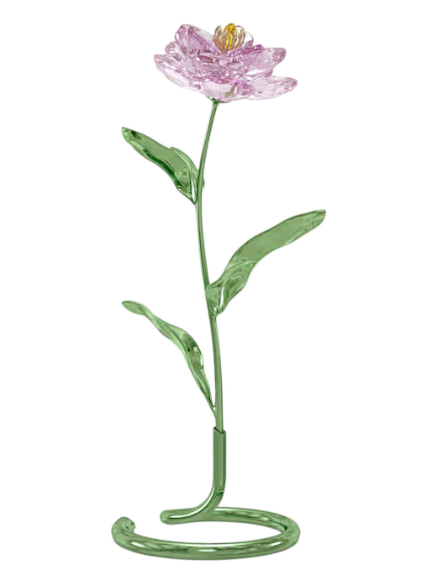 Crafted with 456 expertly cut crystal facets, the flower showcases vibrant pink petals featuring a captivating gradient effect that catches the light from every angle. The green lacquered metal stem and leaves add a touch of realism, while the removable freestanding base allows for versatile styling-no vase required.