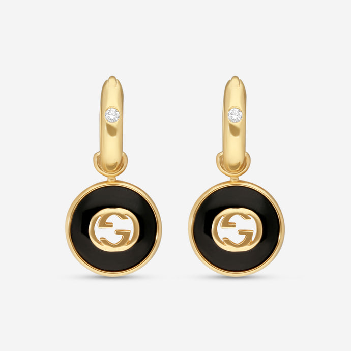 Gucci 18K Yellow Gold Onyx and Diamond Earrings YBD786563001 MSRP $2,950