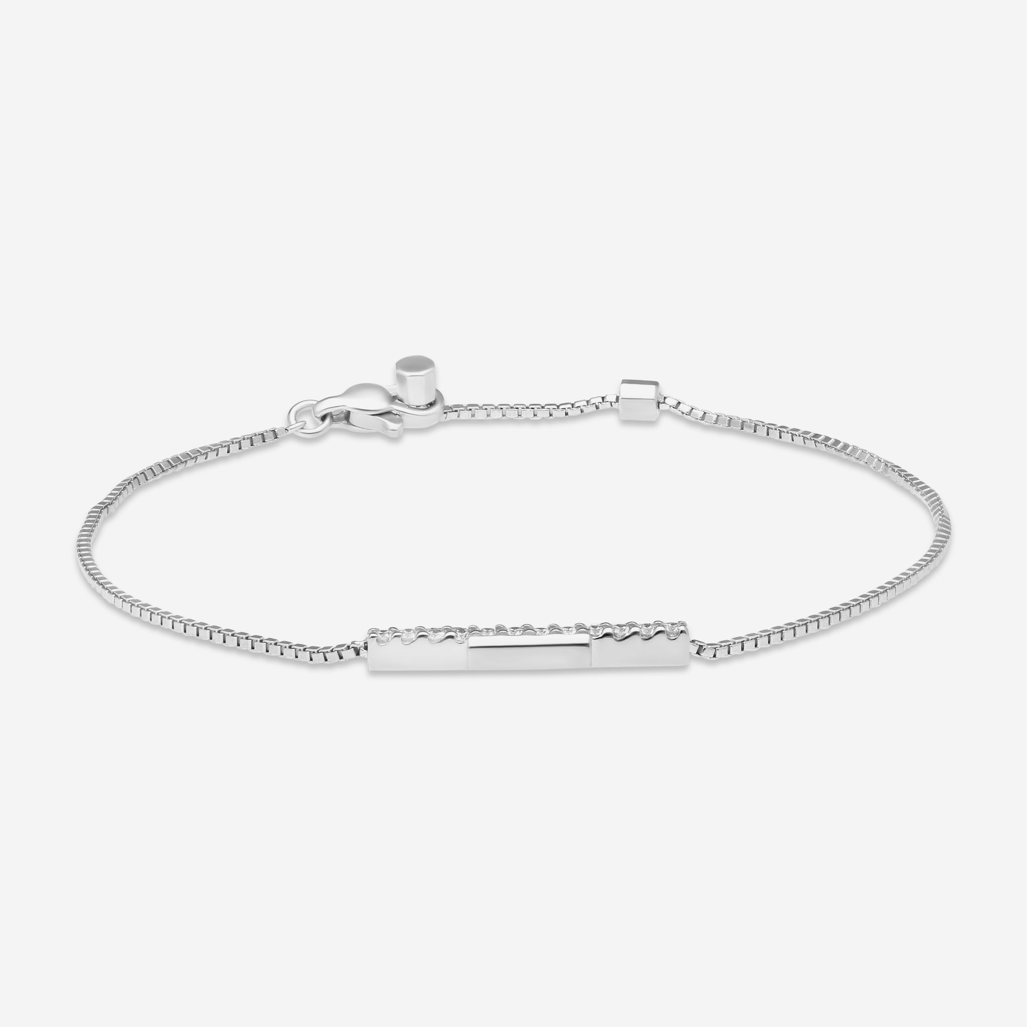 Gucci’s Link to Love bracelet in 18K white gold features a slender bar charm adorned with diamonds, measuring 20mm in length and 2.5mm in width. Set on a 7" chain, this bracelet combines clean lines with radiant sparkle for a look that’s both modern and refined. Weighing 3.63g, it’s ideal for everyday elegance or layered styling. Presented in an official Gucci box, it’s a sophisticated addition to any fine jewelry collection.