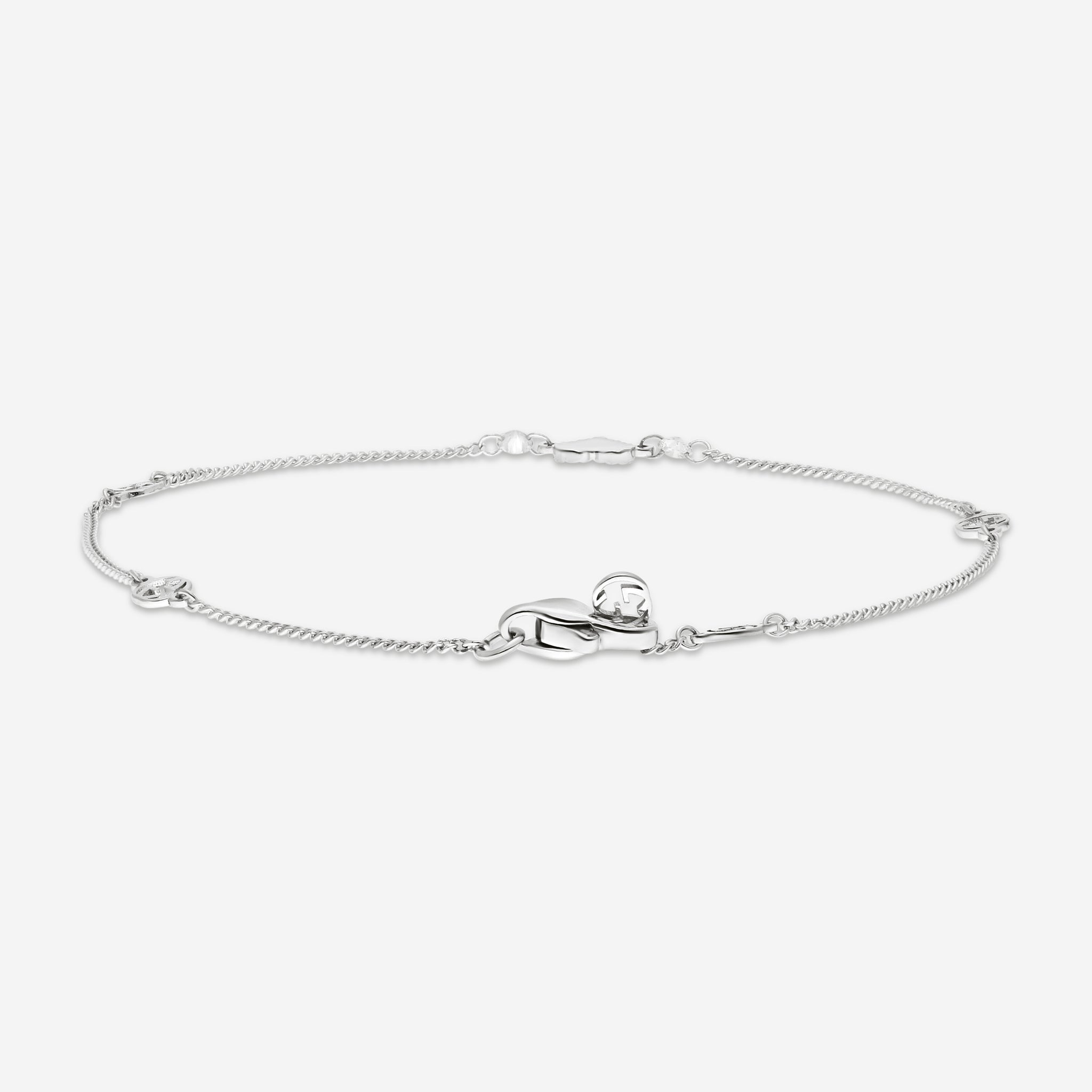 Gucci’s Interlocking G bracelet in 18k white gold captures the house’s romantic spirit with a delicate heart motif accented by brilliant-cut diamonds. The iconic GG emblem is subtly integrated into the design, adding signature refinement to this elegant piece. With a lightweight feel at 1.77g and a 6.5" chain, it rests gracefully on the wrist, while the 5.2mm charm offers just the right touch of sparkle. Presented in an official Gucci box, this bracelet is a timeless symbol of love and style.