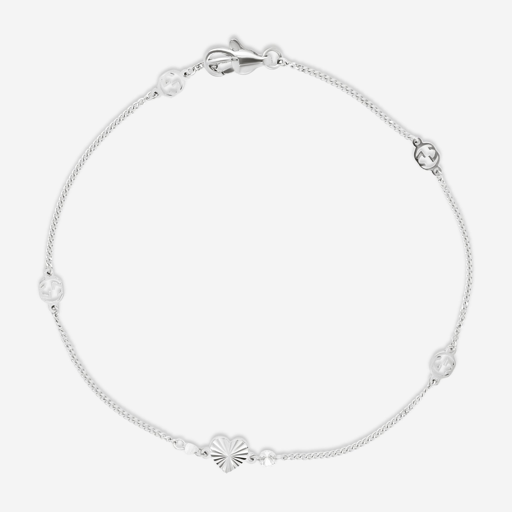 Gucci Interlocking G Heart Motif 18K White Gold & Diamond Bracelet YBA679118001 MSRP $1,870