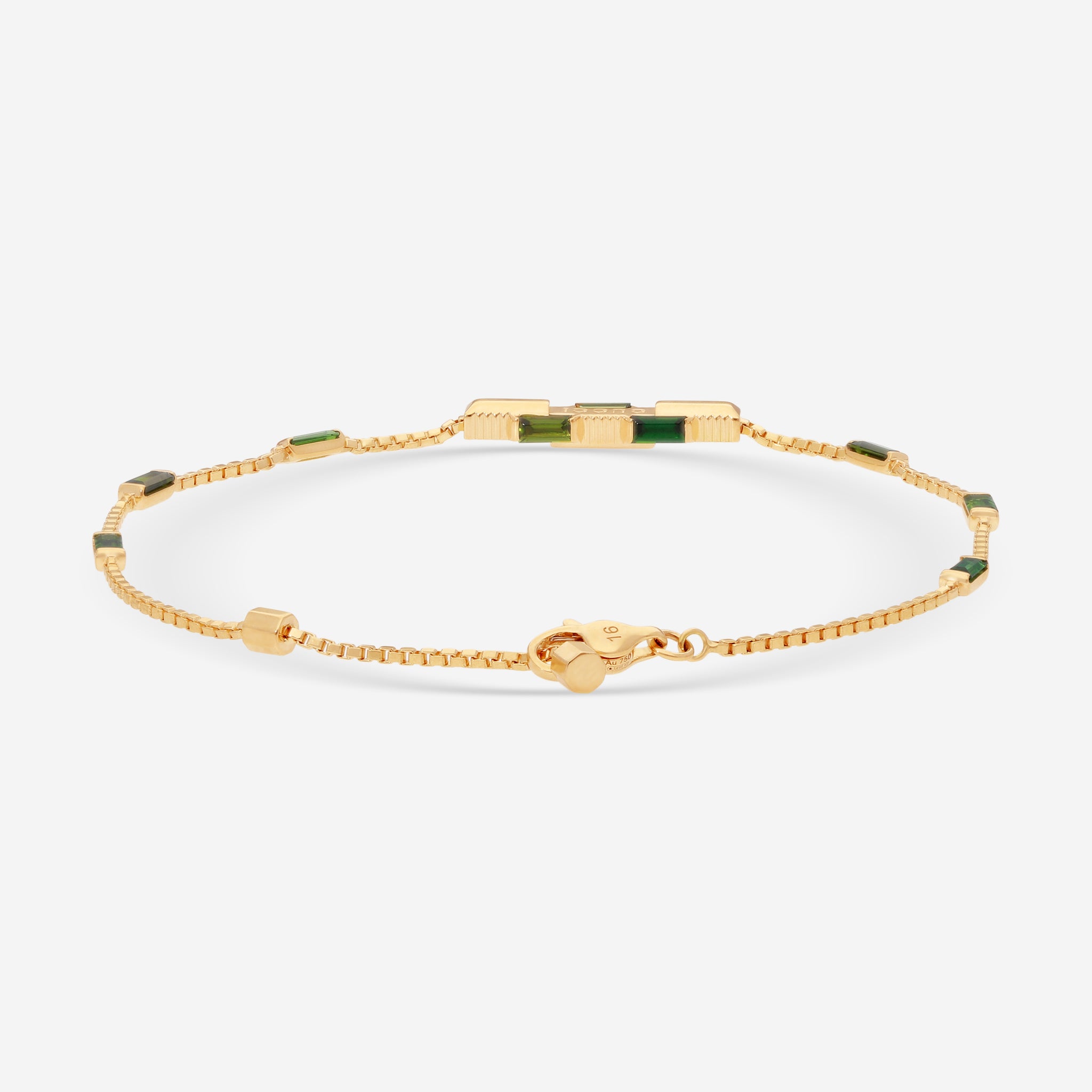 GUCCI Link to Love 18kt Yellow Gold and Green Tourmaline Bracelet YBA702395002 MSRP $3,580.00