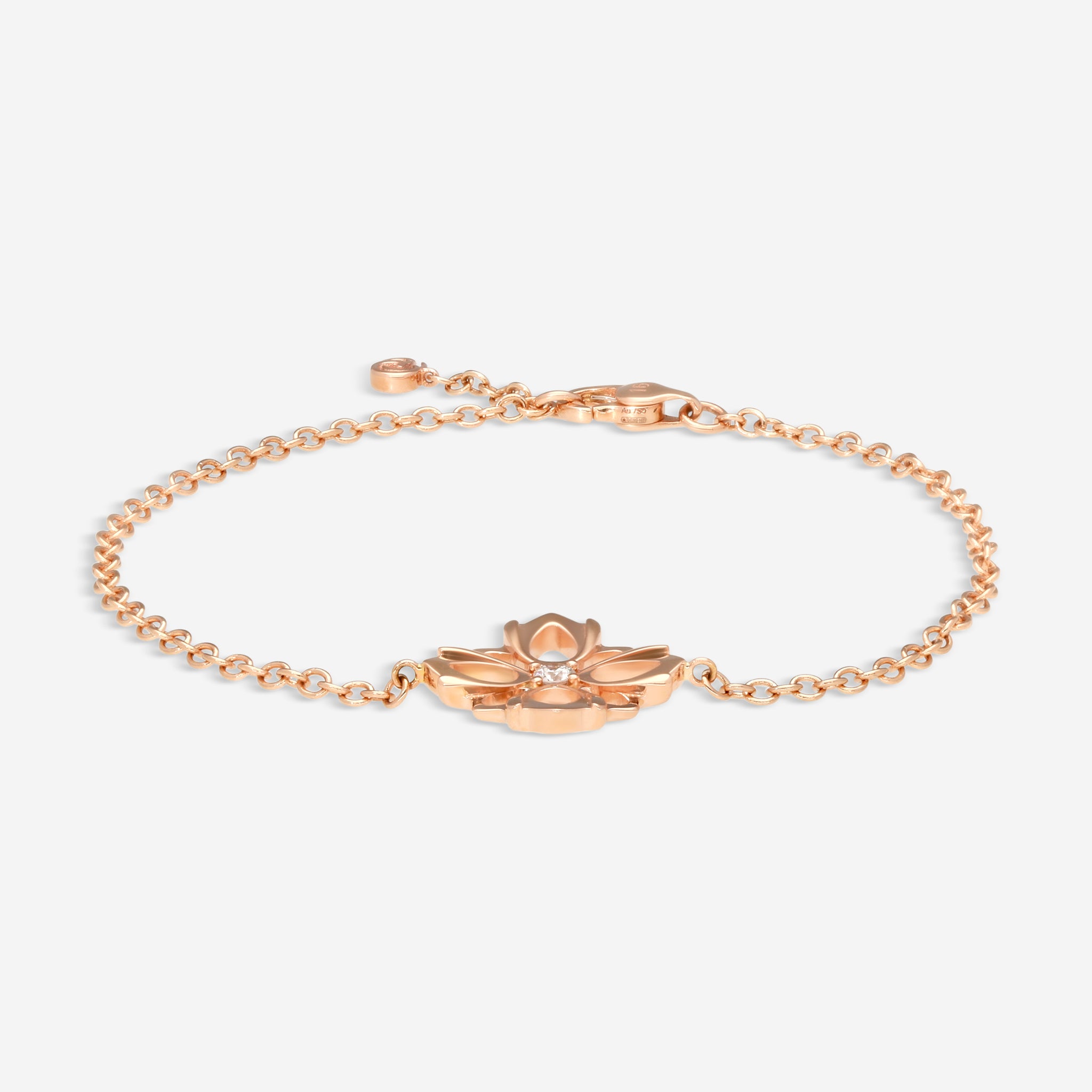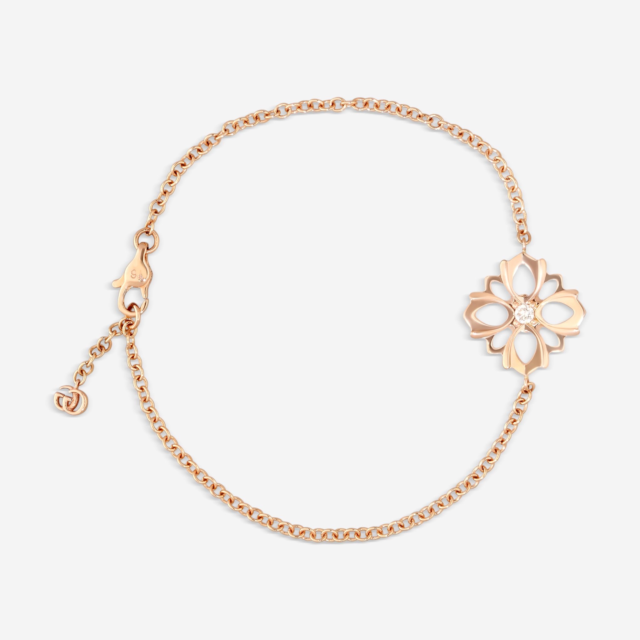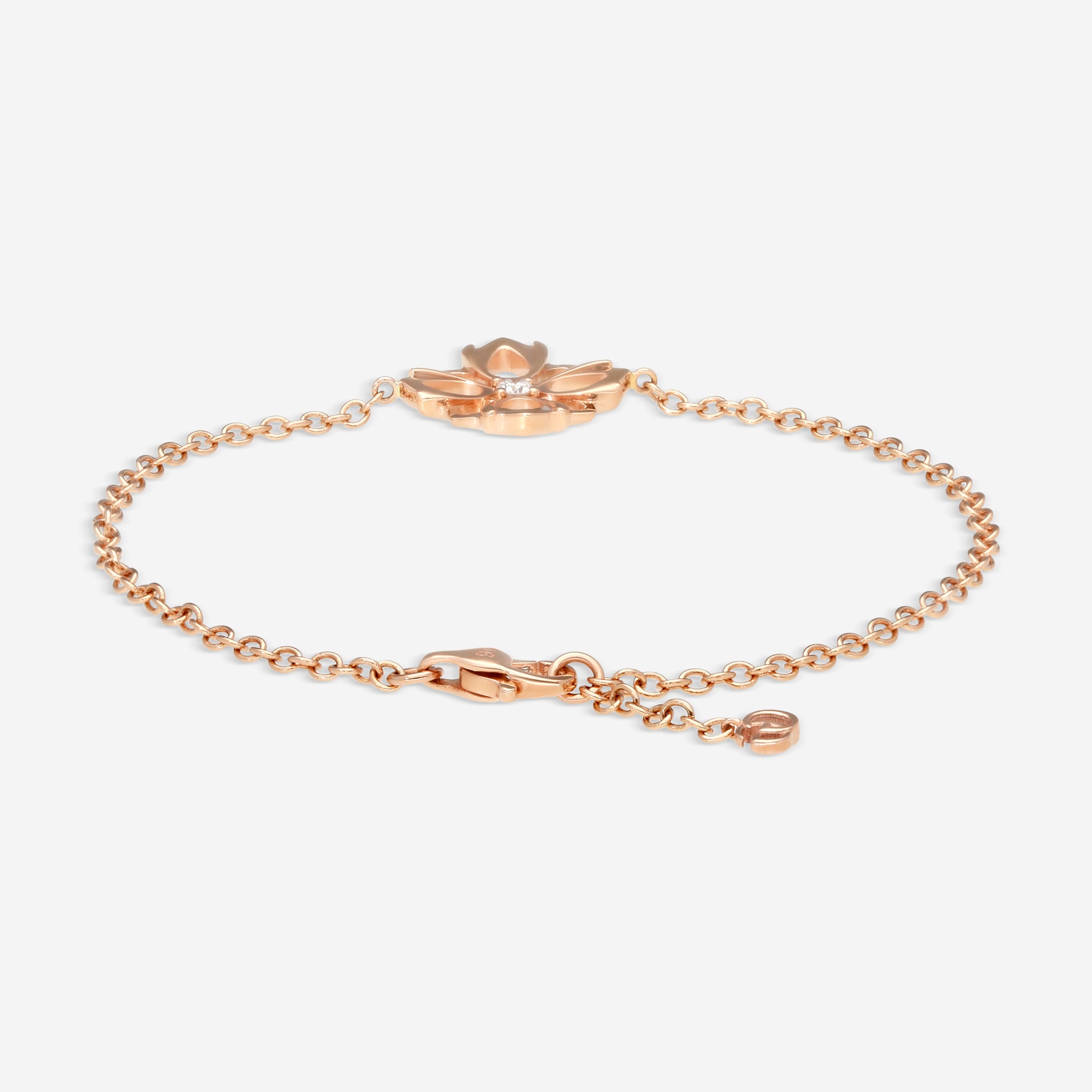 Gucci’s rose gold bracelet features a sleek and minimalist design, centered around a brilliant 0.05ct diamond for a subtle touch of luxury. Weighing 3.73g, the bracelet includes a 6.5-inch chain and a 15mm wide charm. Expertly crafted in Italy and presented in an official Gucci box, it’s a refined and versatile piece perfect for everyday elegance or layered styling.
