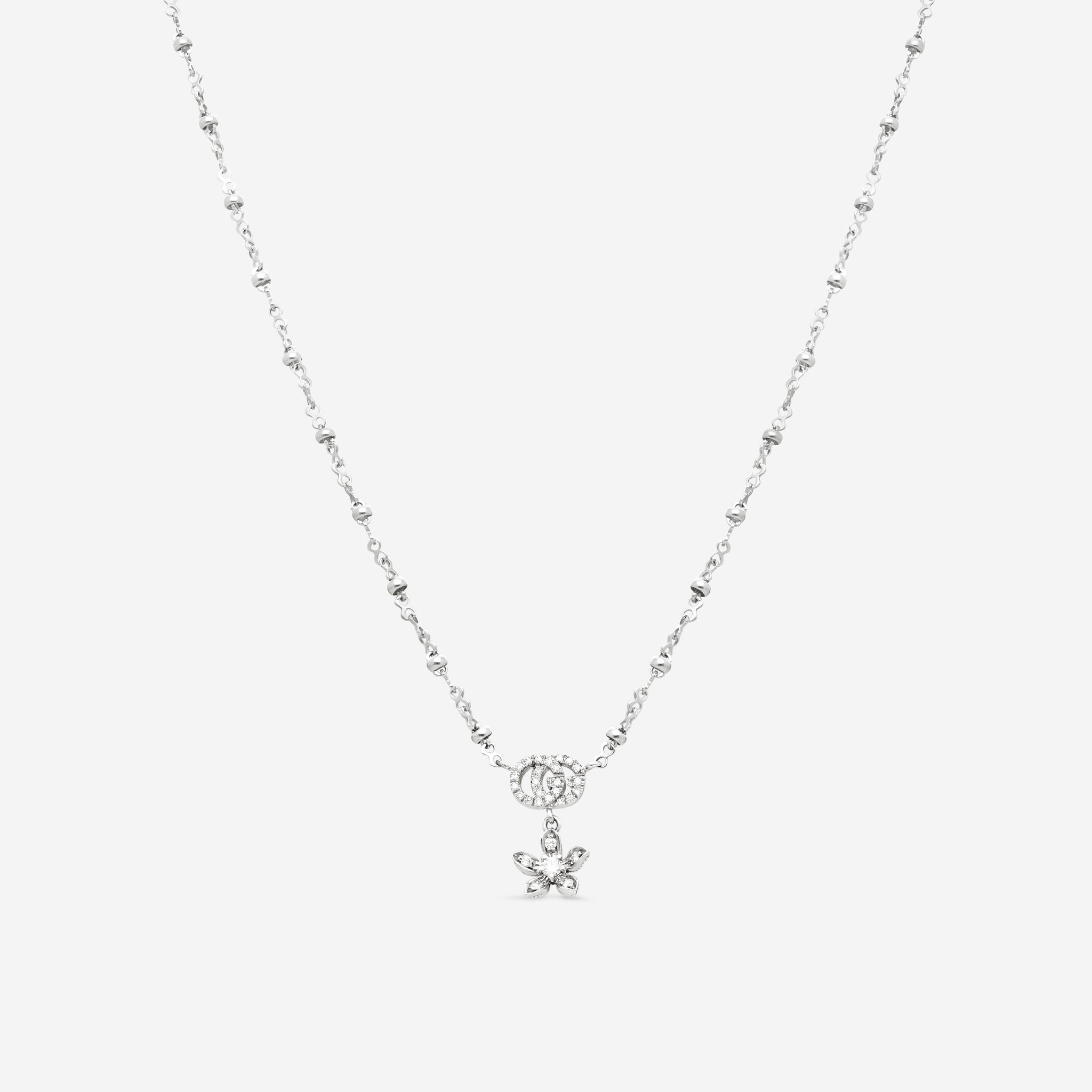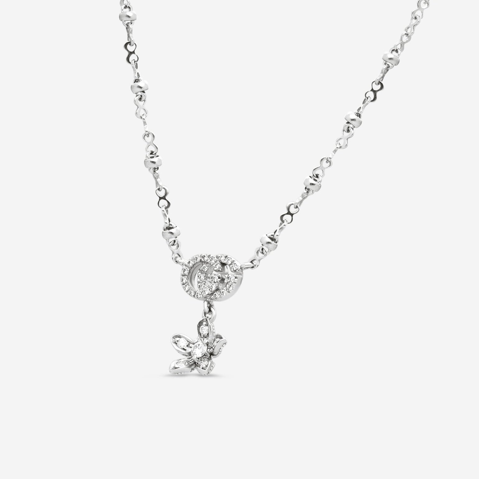 GUCCI Flora 18kt White Gold and Diamond Necklace YBB581842001 MSRP $3,430