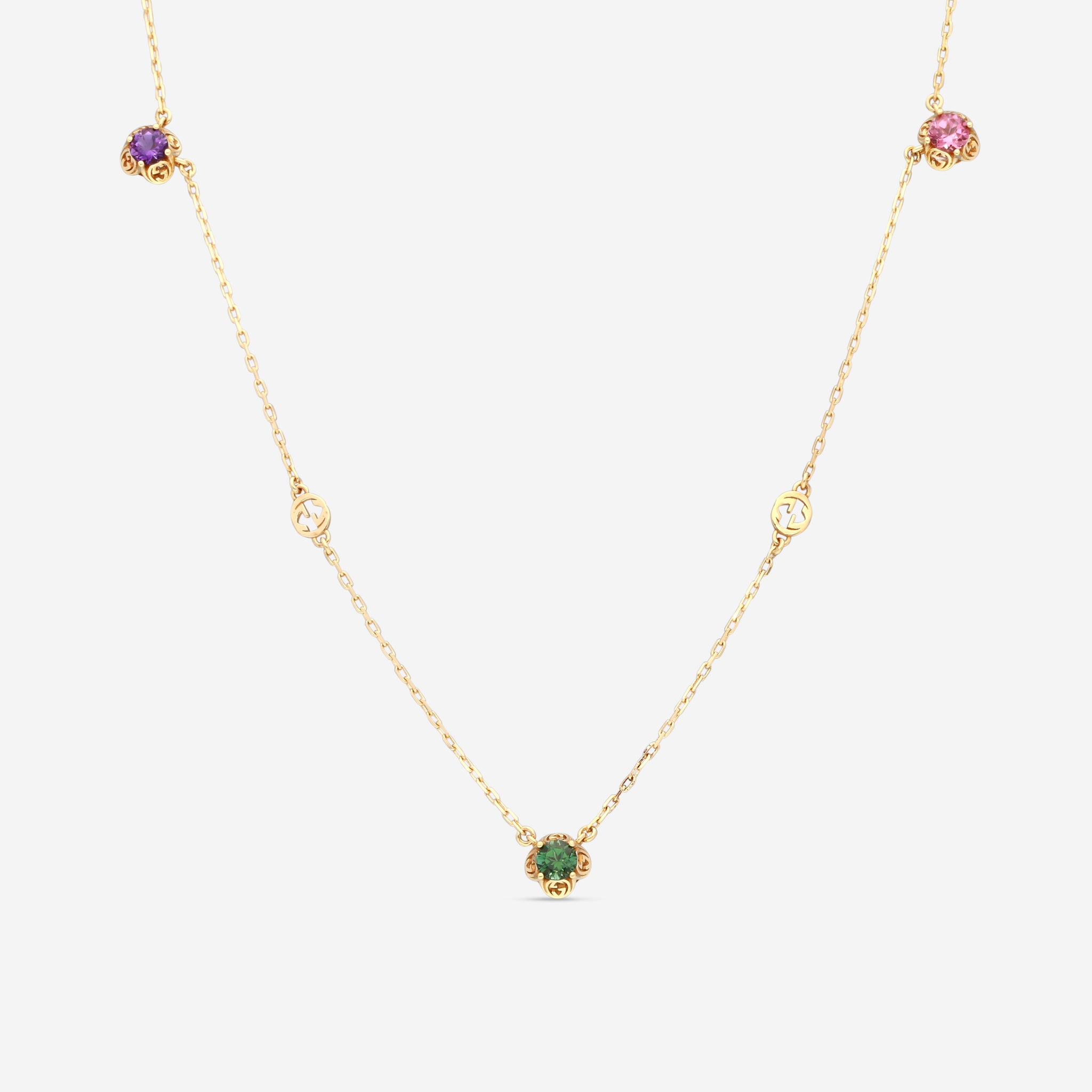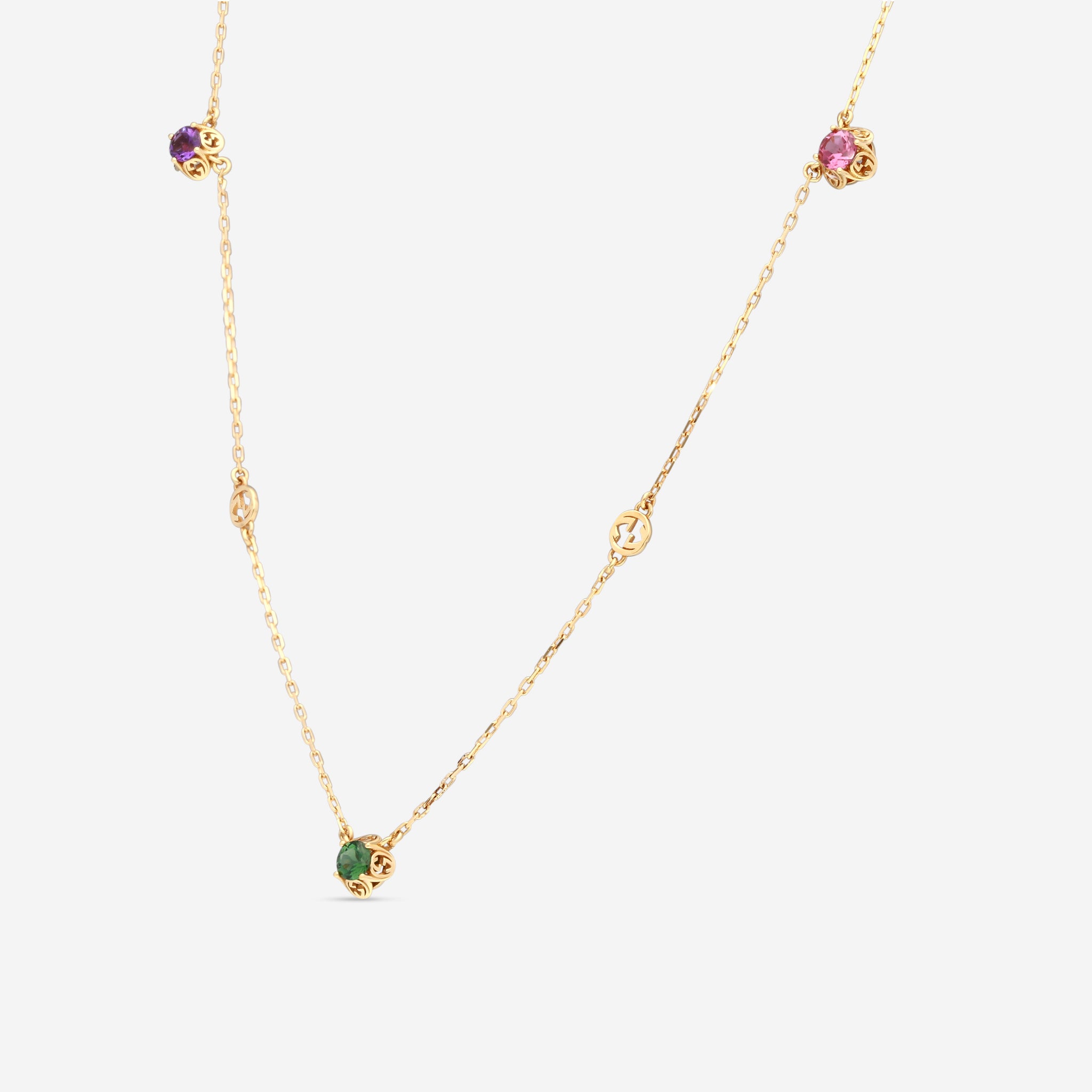 GUCCI Interlocking G Motif 18kt Yellow Gold with Amethyst, Tourmalines, Citrine and Beryl Necklace YBB662429001 MSRP $2,700