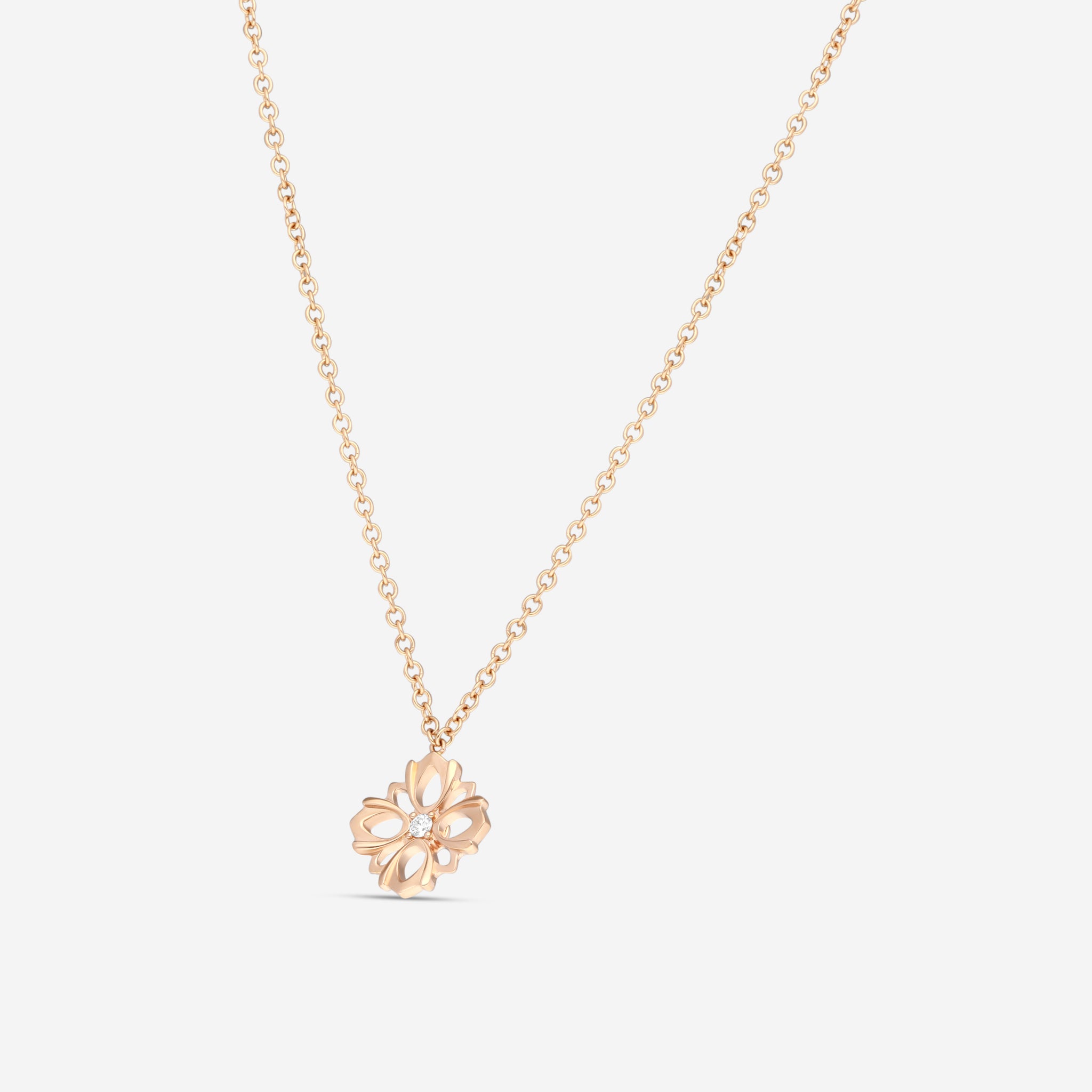 Gucci’s necklace in 18k rose gold is a refined embodiment of modern romance, highlighted by a luminous 0.05ct central diamond set within an elegant floral-inspired pendant. The warm pink gold hue enhances its delicate sophistication, while the 15mm pendant offers just the right presence. Designed with an adjustable 17.5" chain, this 5.71g piece is both graceful and versatile. Presented in an official Gucci box, it is a timeless expression of femininity and fine Italian craftsmanship.