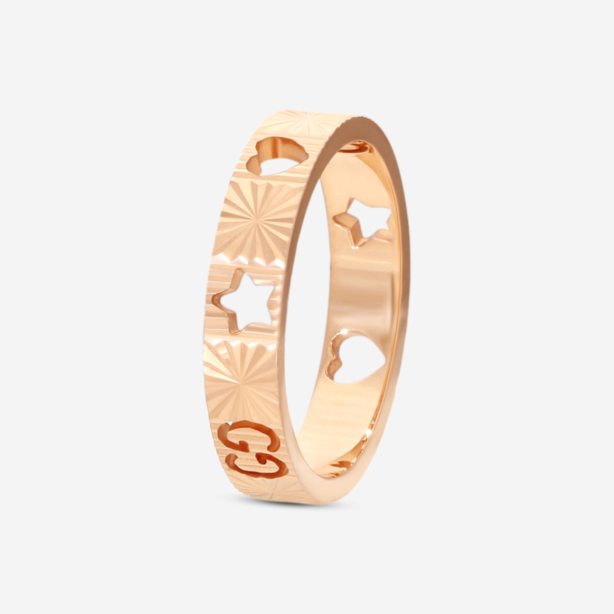 Gucci’s Icon band ring in 18k rose gold is a sleek and modern expression of the house’s signature style. Featuring the emblematic interlocking GG motif engraved along the polished surface, this refined piece blends minimalism with unmistakable brand identity. The warm tone of rose gold offers a soft yet striking presence, while the clean 4mm band delivers everyday versatility with elevated elegance. Weighing 3.84g and offered in a size 6.75, it’s a timeless design suited for both stacking and solo wear. Presented in an official Gucci box, this piece is a luxurious staple in any fine jewelry collection.