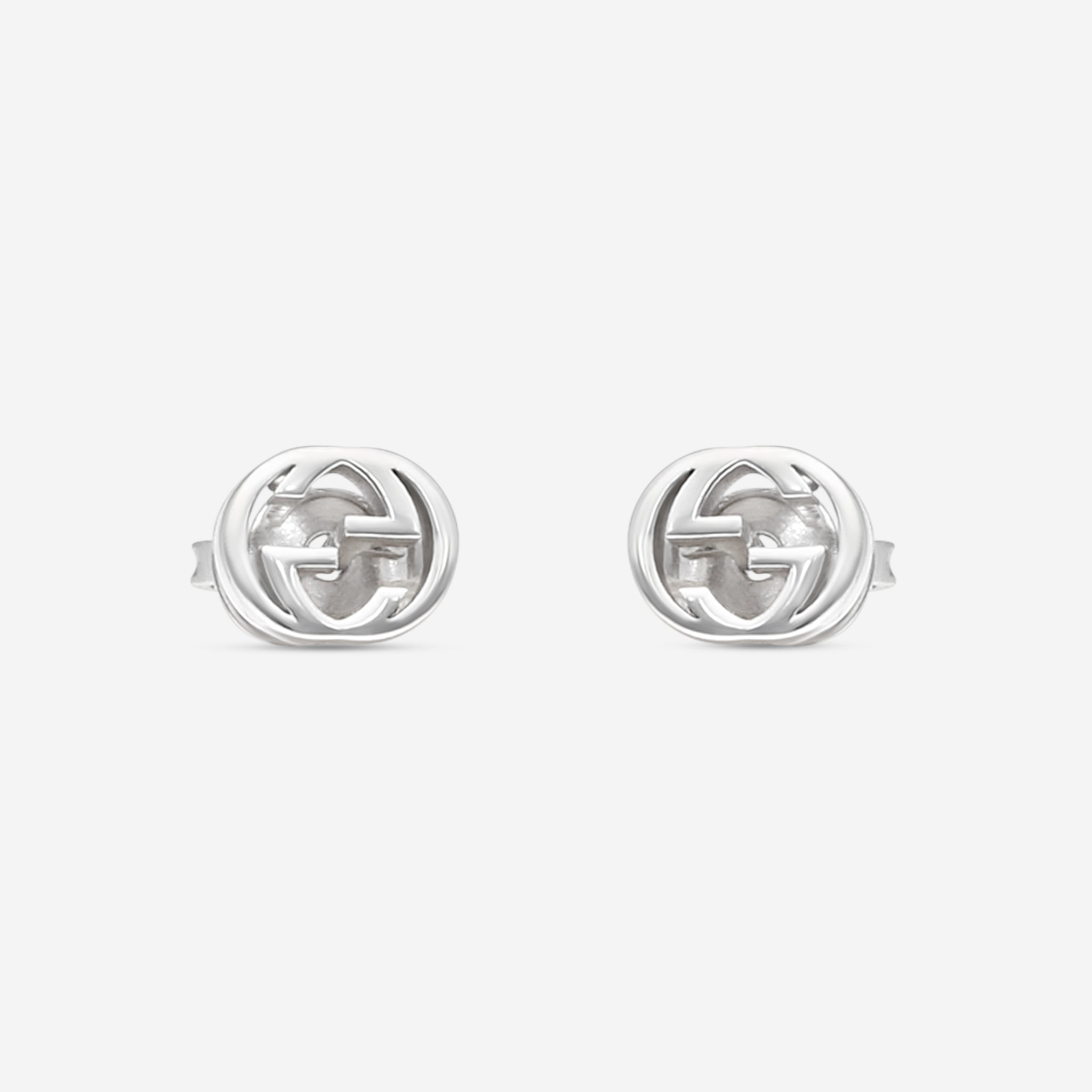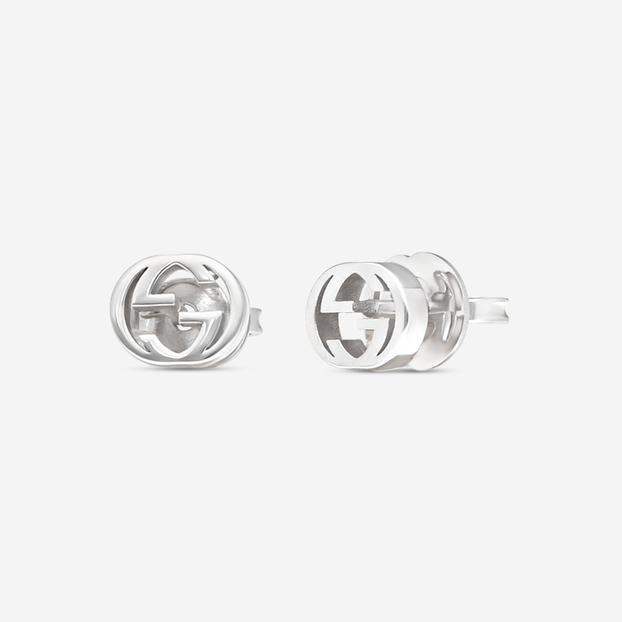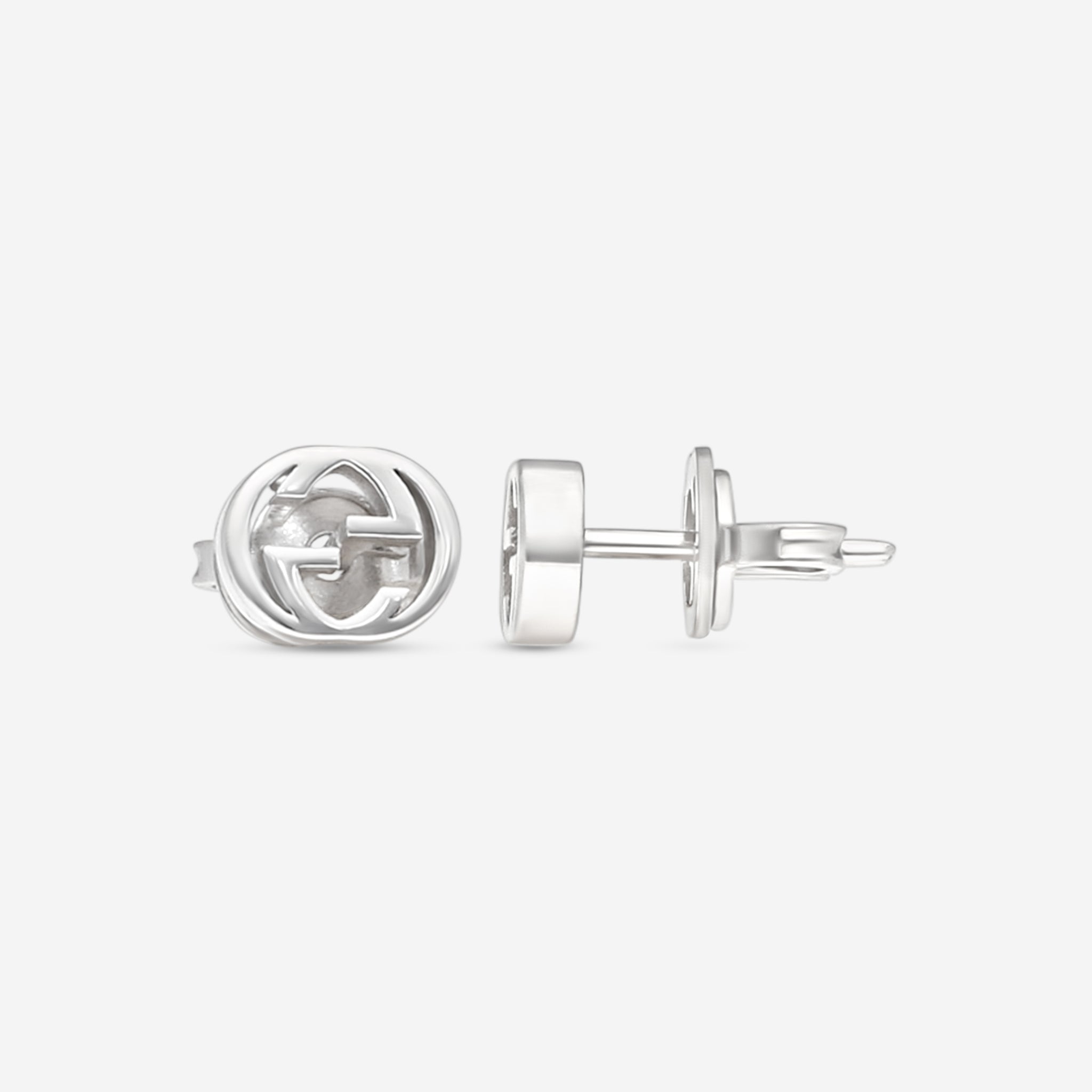 Gucci’s earrings with the Interlocking G motif in 18K white gold are a sleek nod to the brand’s heritage, crafted for everyday elegance. These refined stud earrings feature the iconic GG logo, measuring 6.6mm in width and 5.2mm in length, and are made from polished 18K white gold. Weighing a total of 2.15g, they offer a subtle yet sophisticated statement. Presented in an official Gucci box, they’re a timeless addition to any jewelry collection.