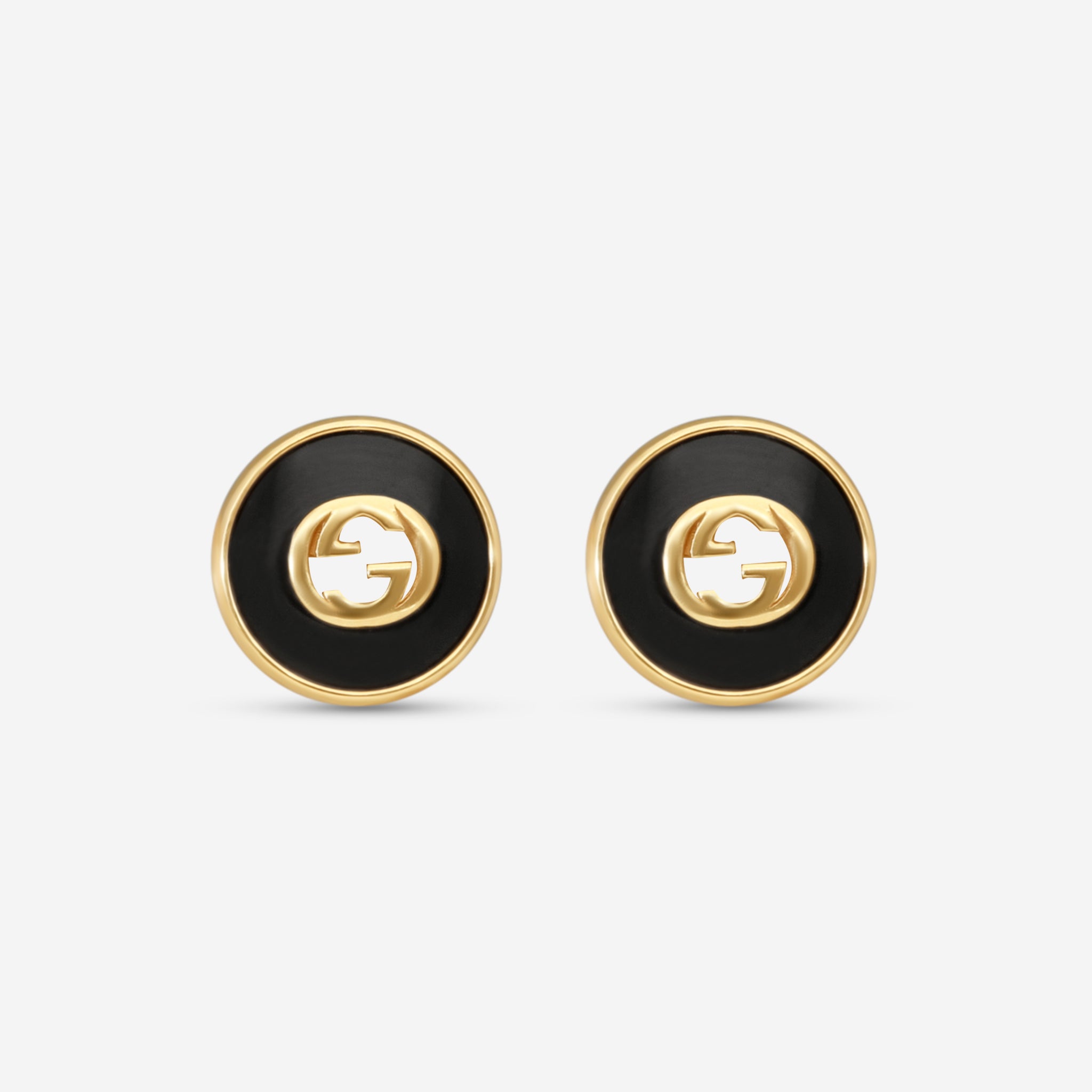Gucci’s 18K yellow gold stud earrings feature bold 12mm onyx stones, offering a striking contrast with the warm gold setting. Weighing 4.81g, each stud measures 12mm in width and 4.4mm in depth, crafted with expert Italian craftsmanship. Presented in an official Gucci box, these earrings are a timeless addition to any fine jewelry collection.
