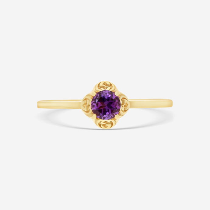 Gucci 18K Yellow Gold and Amethyst Interlocking G Motif Ring YBC662428003 MSRP $820