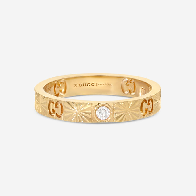 Gucci Icon Ring 18K Yellow Gold and Diamond Band Ring YBC727892002 MSRP $1,500
