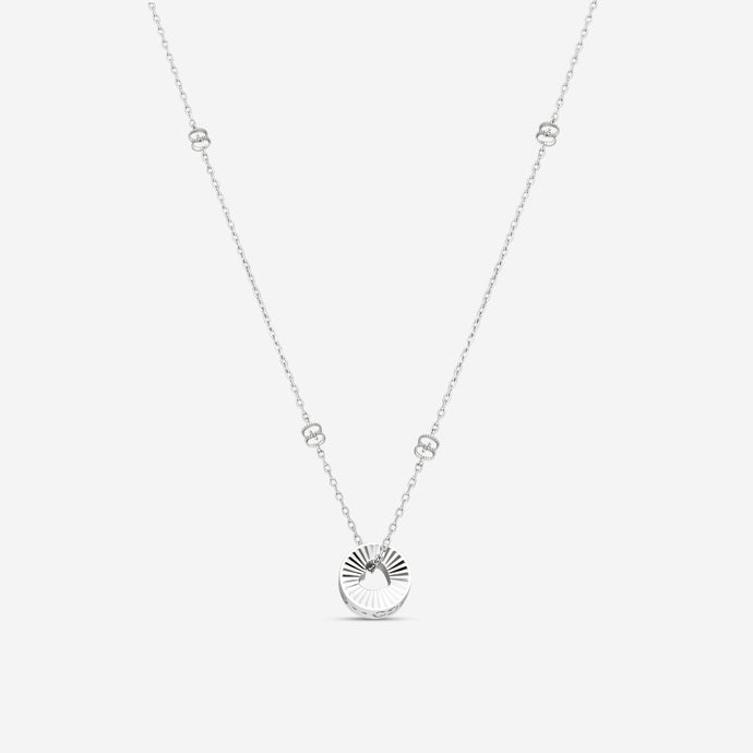 Gucci 18K White Gold Round Pendant Necklace with Heart Cut-Out YBB729373002 MSRP $2,910