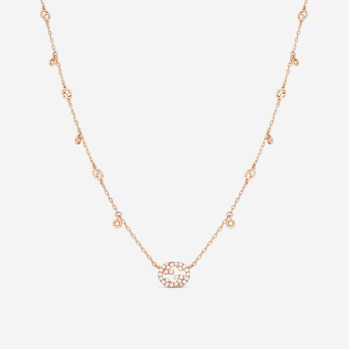 Gucci 18K Rose Gold & Diamond Pendant Necklace YBB729402001 MSRP $3,300