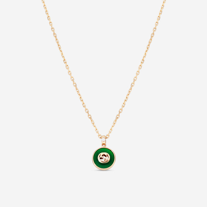 Gucci 18K Rose Gold Green Agate and Diamond Necklace YBB789340002 MSRP $2,700