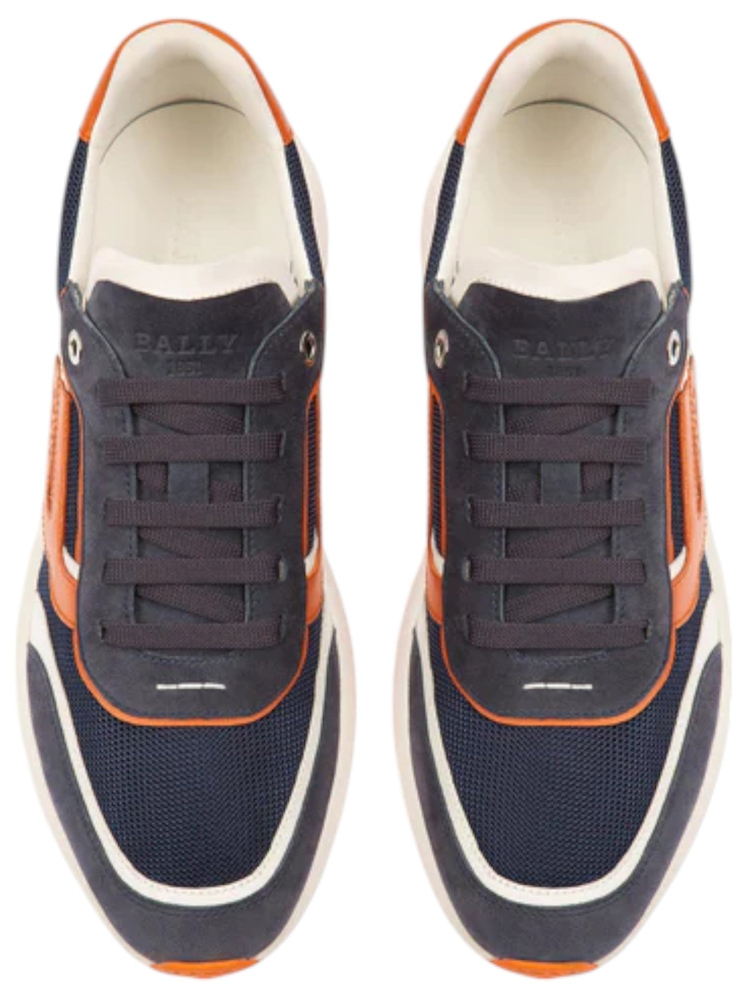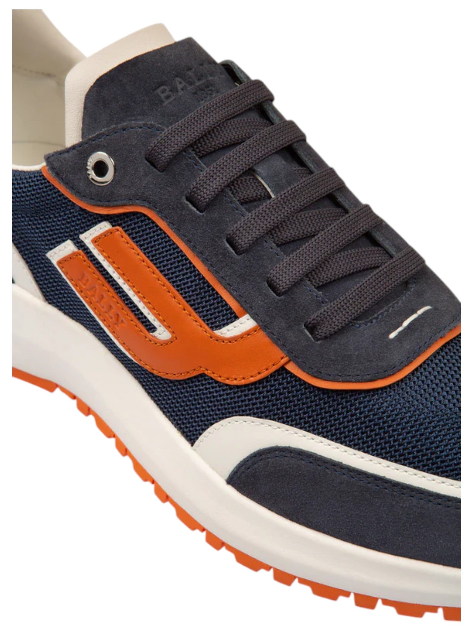 Bally Demmy Men's Midnight/White/Orange Leather Sneakers - 6300211