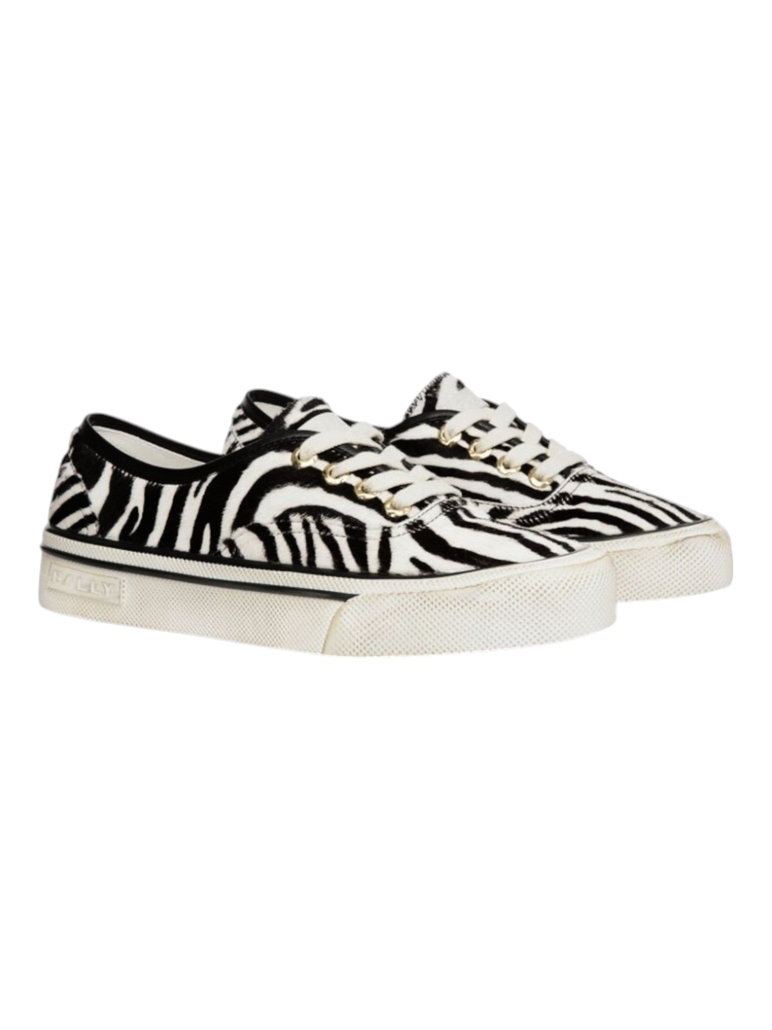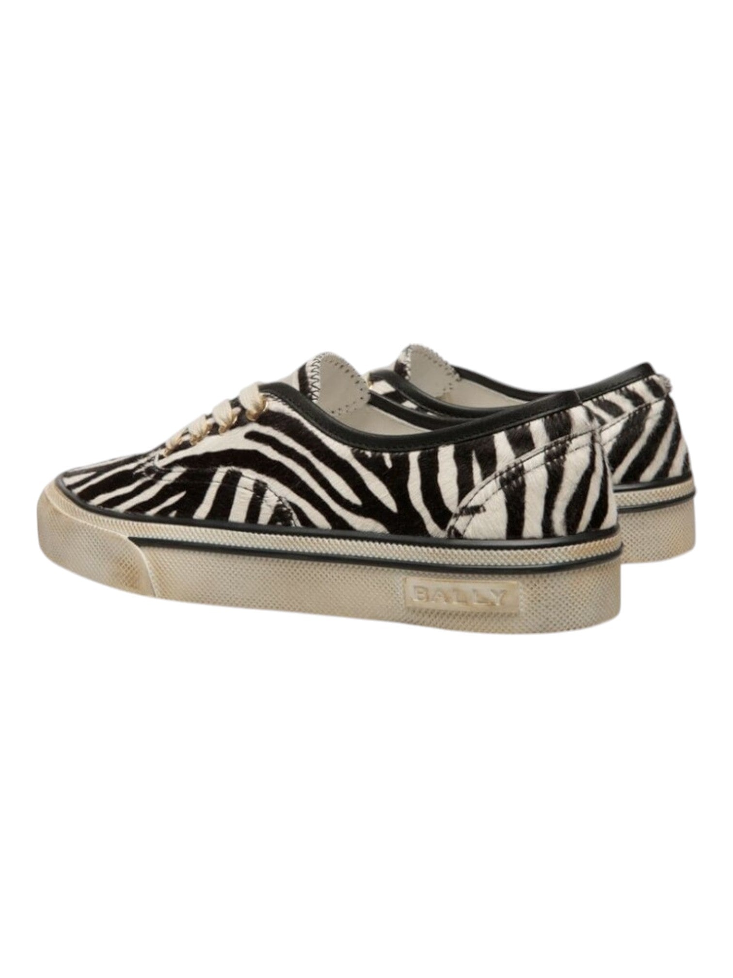 Bally Lyder Men's White & Black Zebra Print Hair Calf Leather Sneakers - 6304704