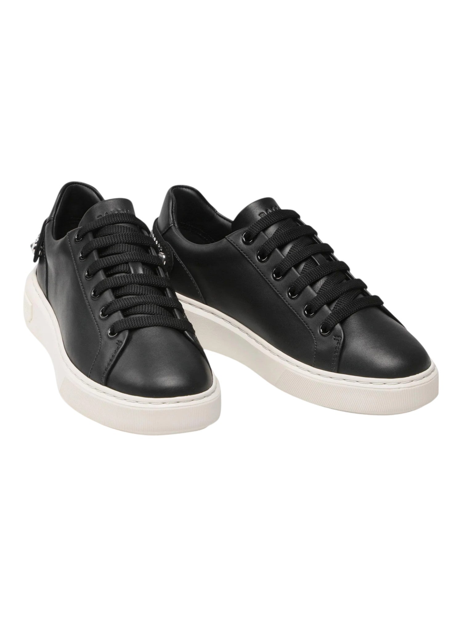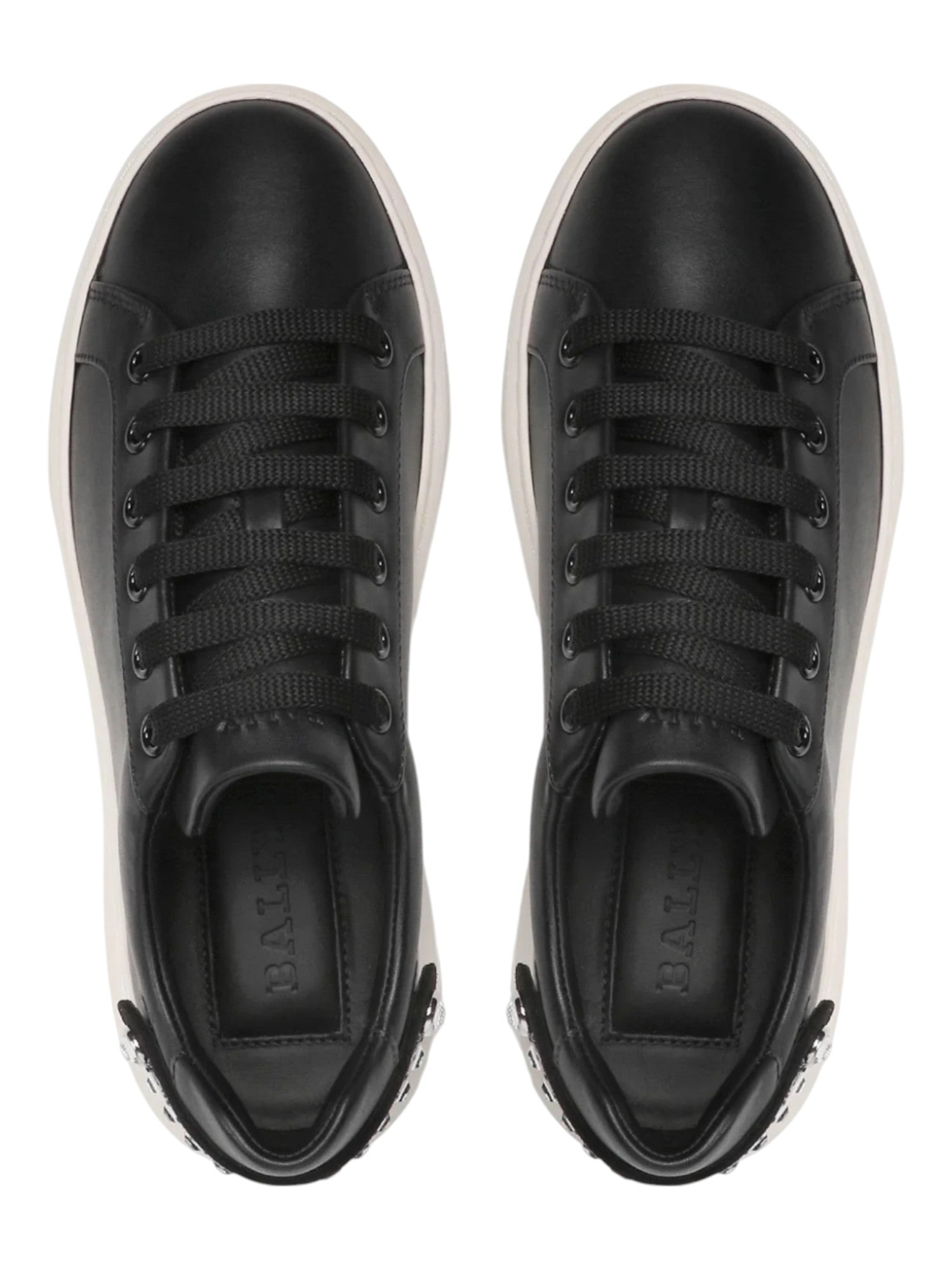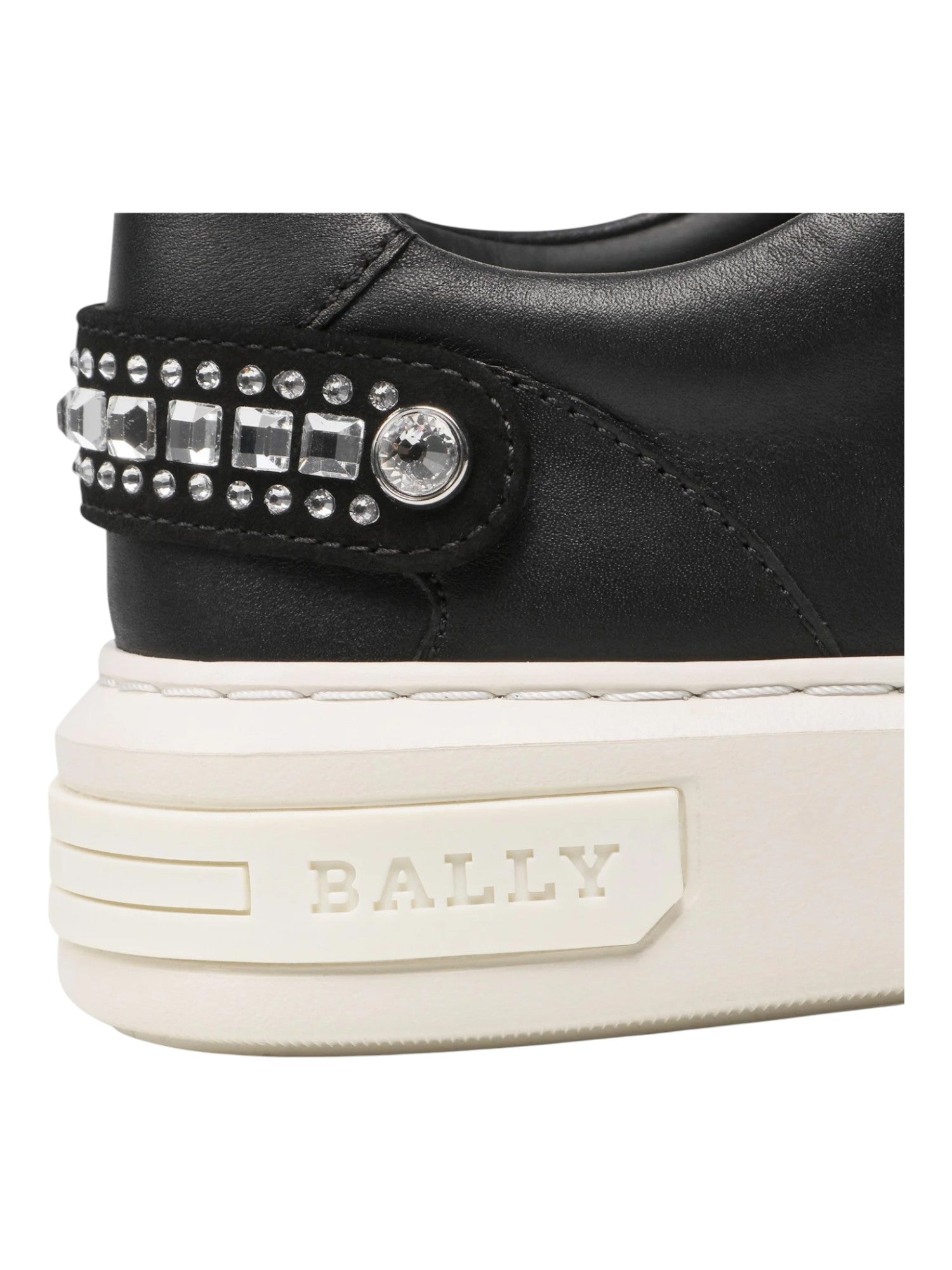 Elevate your everyday style with these chic Bally Malya black leather sneakers. Designed with a clean, modern silhouette, these sneakers combine classic luxury with a touch of sparkle, thanks to the crystal-embellished removable heel strap.
