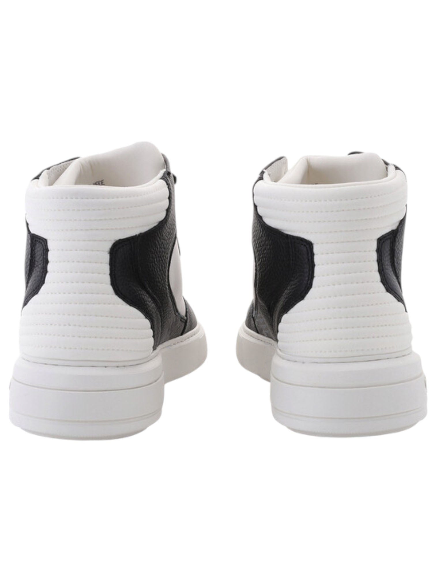 Elevate your sneaker collection with the Bally Martyn High-Top Sneakers, a perfect blend of luxury craftsmanship and urban edge. Designed with premium grained leather, these black and white high-tops feature quilted accents and perforated detailing for a refined yet sporty aesthetic. A durable rubber sole ensures lasting comfort and support, making them a versatile addition to any wardrobe.