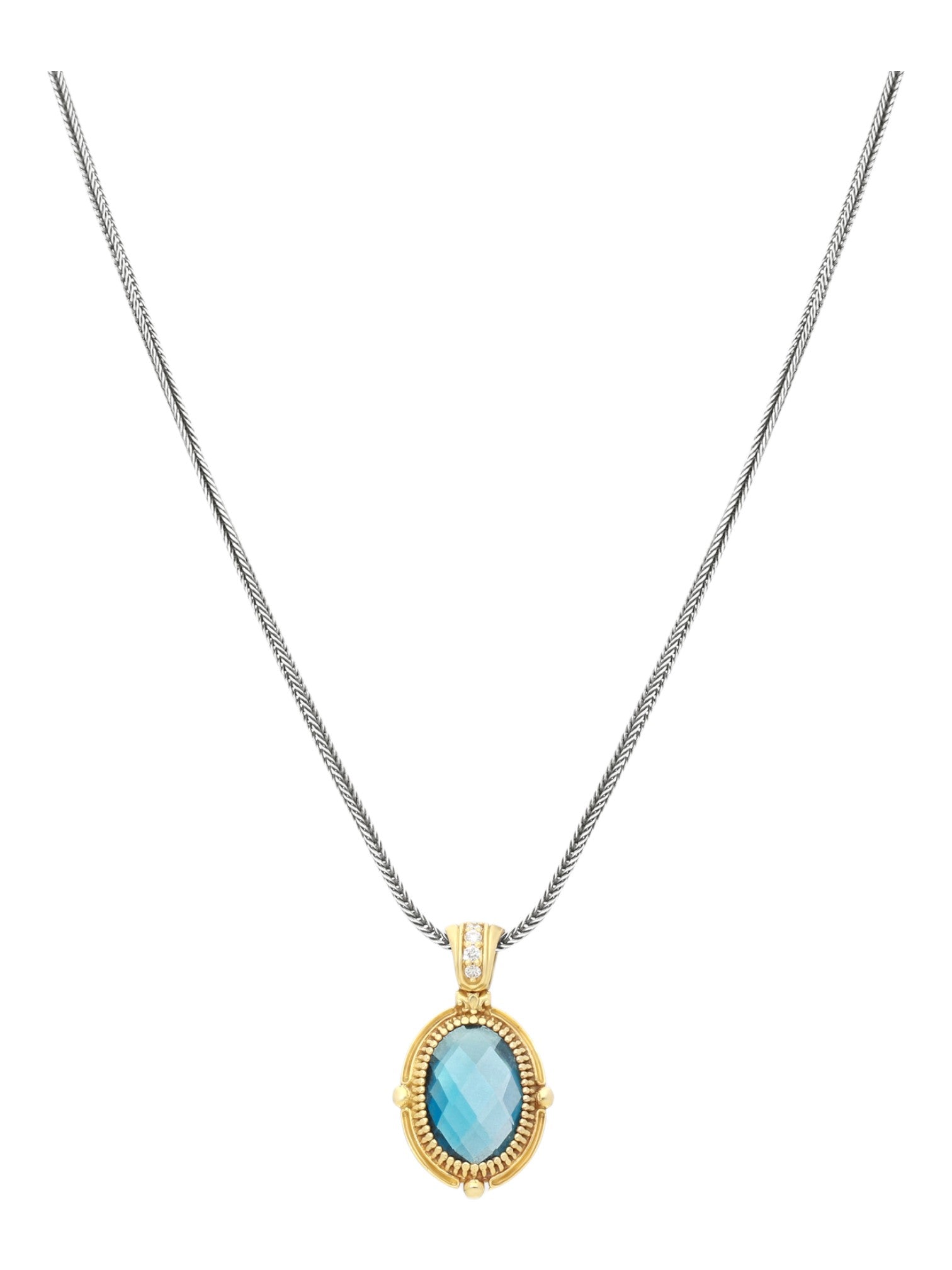 The Konstantino 18K Gold with Diamonds Pendant with Chain showcases a stunning blend of timeless artistry and modern elegance. This pendant embodies the classical detailing Konstantino is renowned for, while the soft silhouettes add a contemporary touch. Crafted from 18k gold and diamonds, the pendant is further enhanced by the vibrant diamonds and stones, making it a standout piece for any collection.