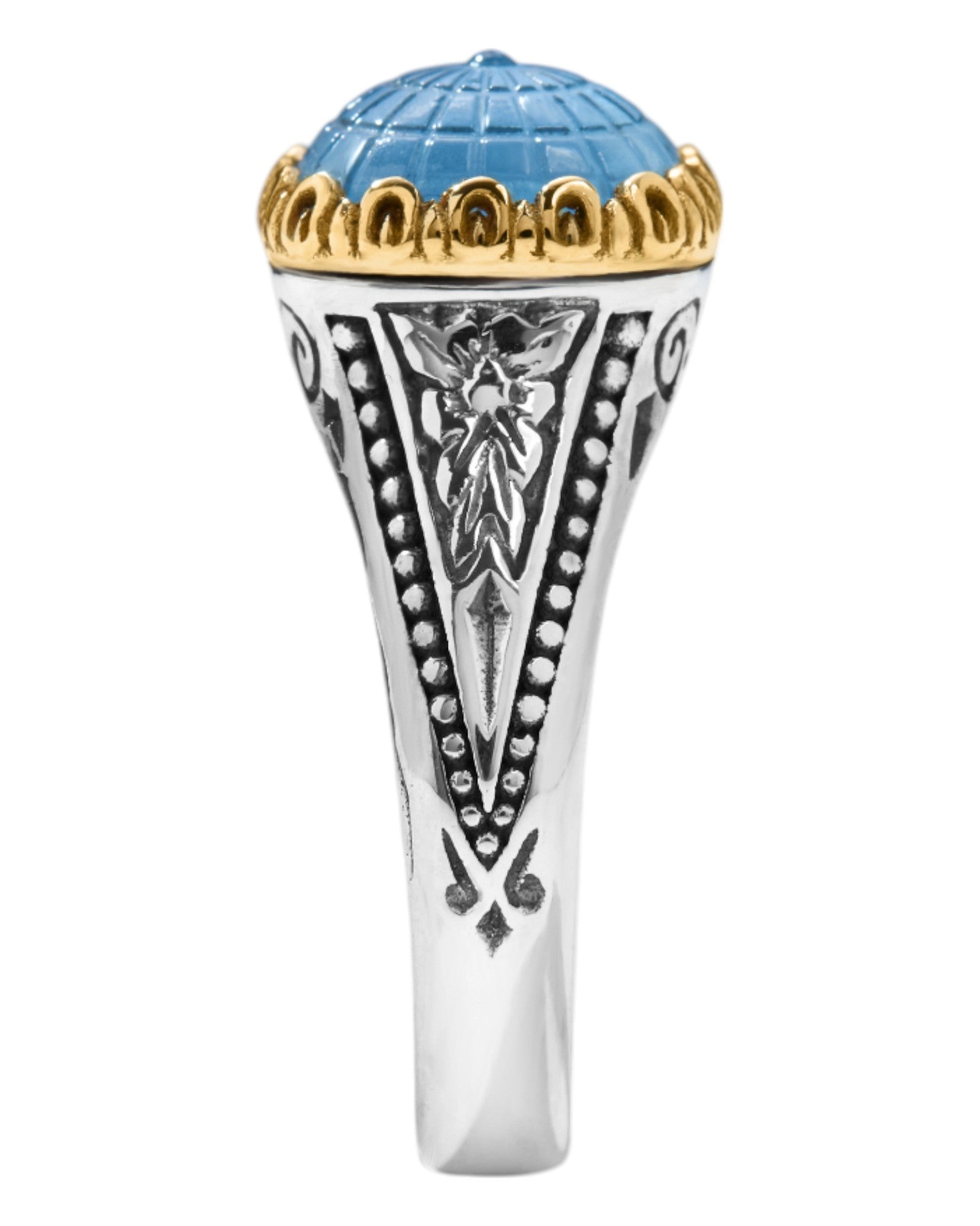 Konstantino Dome Silver 18k Gold Mother of Pearl Blue Spinel Ring - DKJ970-628 S8