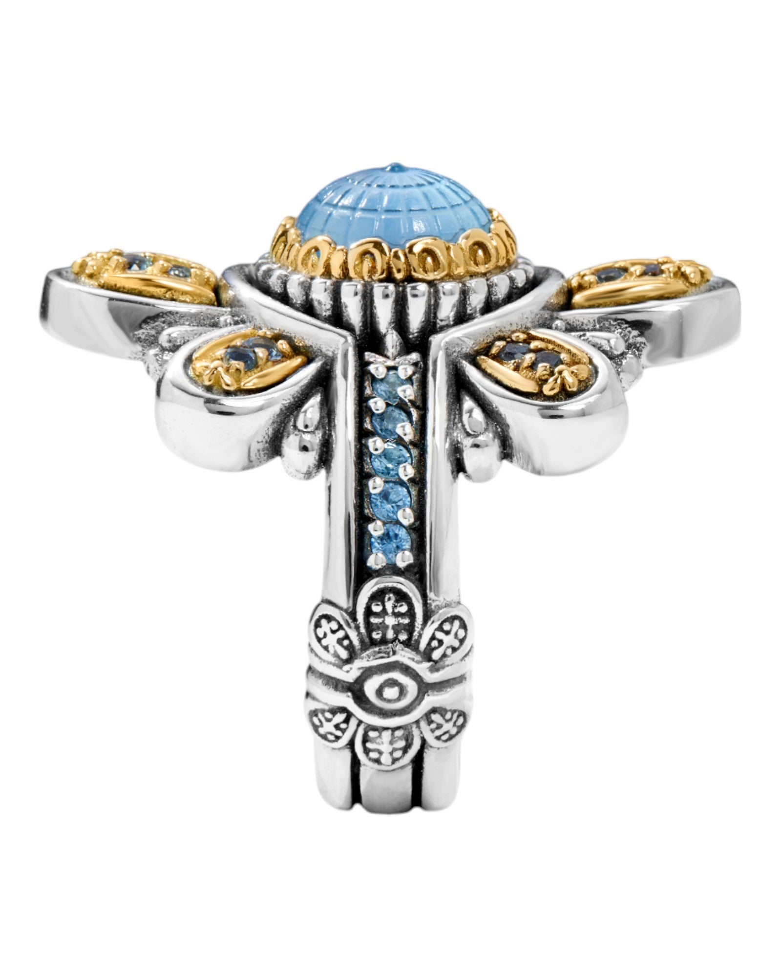 Konstantino Dome Sterling Silver, 18k Gold Mother of Pearl and Blue Spinel Ring - DKJ975-629 S7