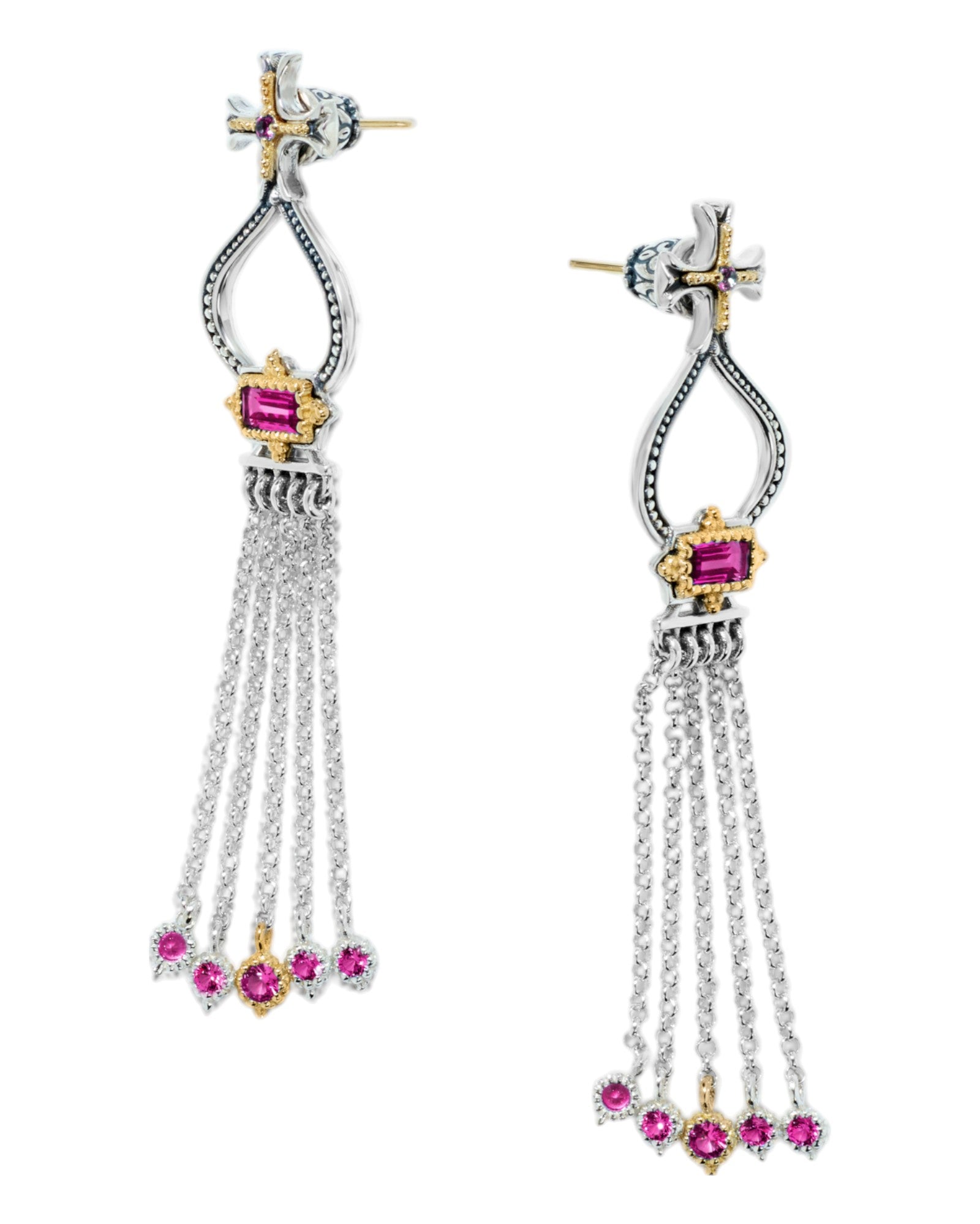 Konstantino Dome Sterling Silver 18K Gold Corundum Tassle Earrings - SKKJ705-538