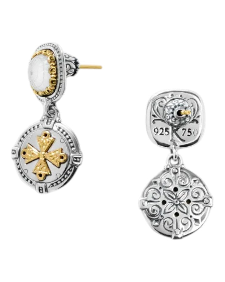 The Konstantino Dome Sterling Silver 18K Gold & MOP Earrings are an exquisite blend of timeless design and modern elegance. Featuring intricate cross designs, these earrings reflect Konstantino's classical detailing with a contemporary twist in soft, graceful silhouettes. Crafted from sterling silver and 18K gold, these earrings are accented with crystal and Mother of Pearl doublet, adding a radiant, sophisticated touch.