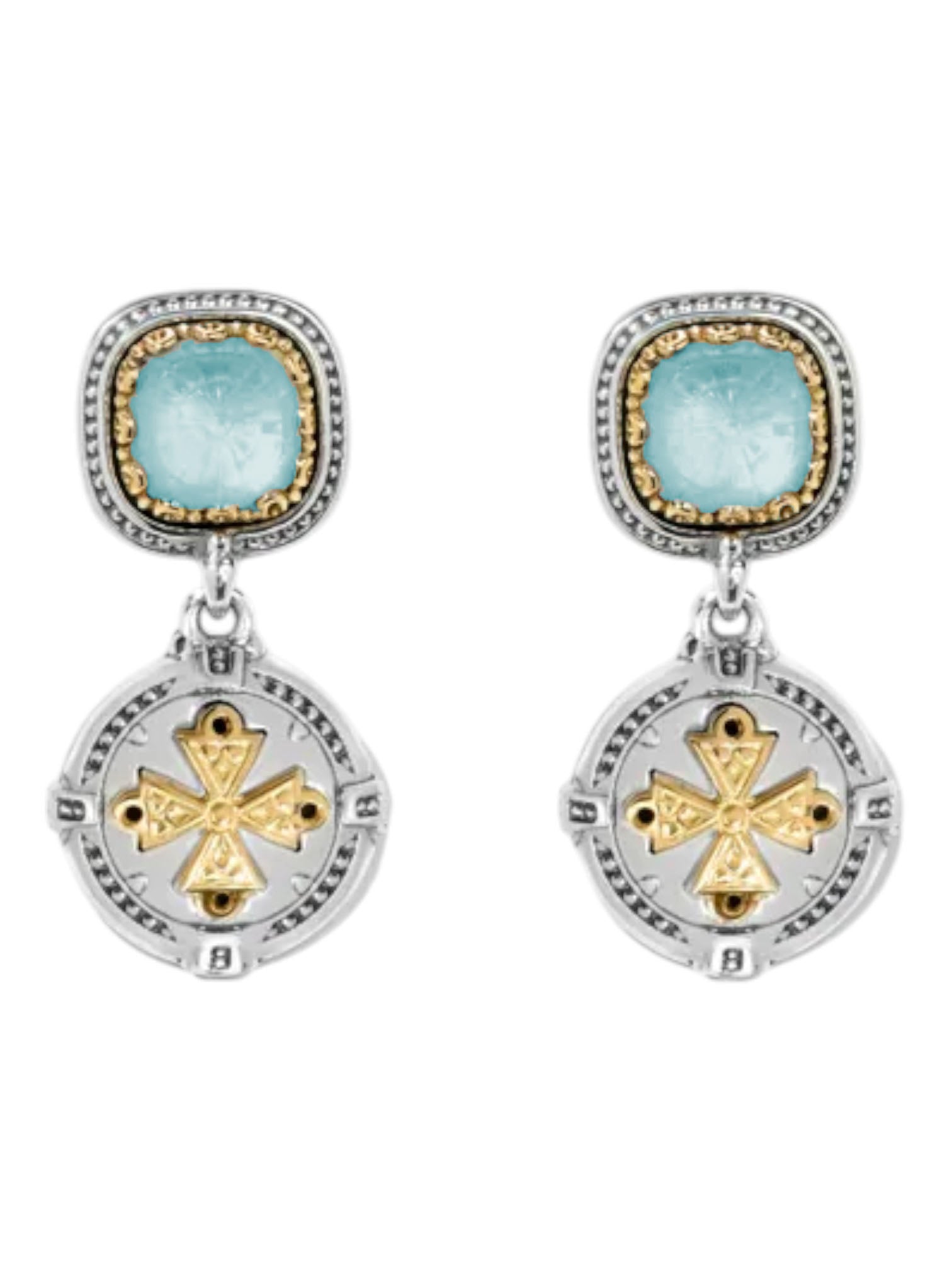 The Konstantino Dome Sterling Silver 18K Gold, Mother of Pearl & Blue Spinel Earrings are an exquisite blend of timeless design and modern elegance. Featuring intricate cross designs, these earrings reflect Konstantino's classical detailing with a contemporary twist in soft, graceful silhouettes. Crafted from sterling silver and 18K gold, these earrings are accented with Blue Spinel and Mother of Pearl doublet, adding a radiant, sophisticated touch.