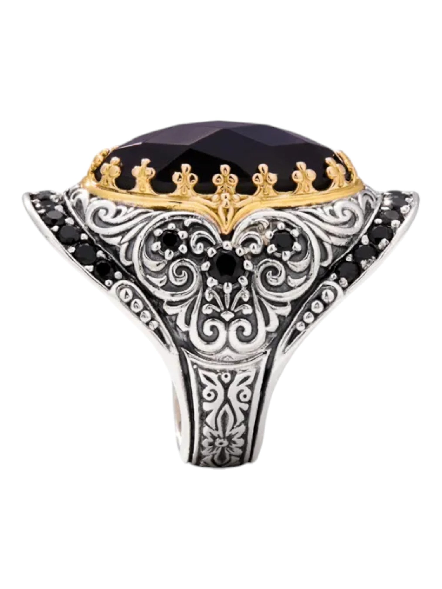 Konstantino Sibylla Sterling Silver 18k Gold Black Spinel & Onyx Ring - DMK2012-314-CUT S7