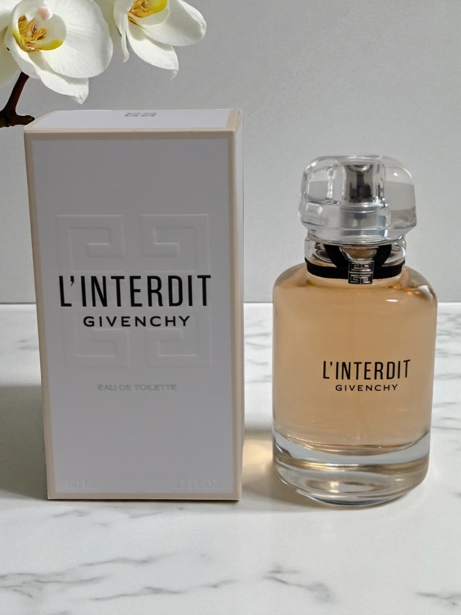 Dare to defy convention with L'Interdit by Givenchy, a bold and elegant Eau de Toilette that celebrates fearless femininity. This 2.7 oz (80 ml) fragrance blends radiant orange blossom and tuberose with deep vetiver and patchouli, creating a striking contrast between light and dark.
