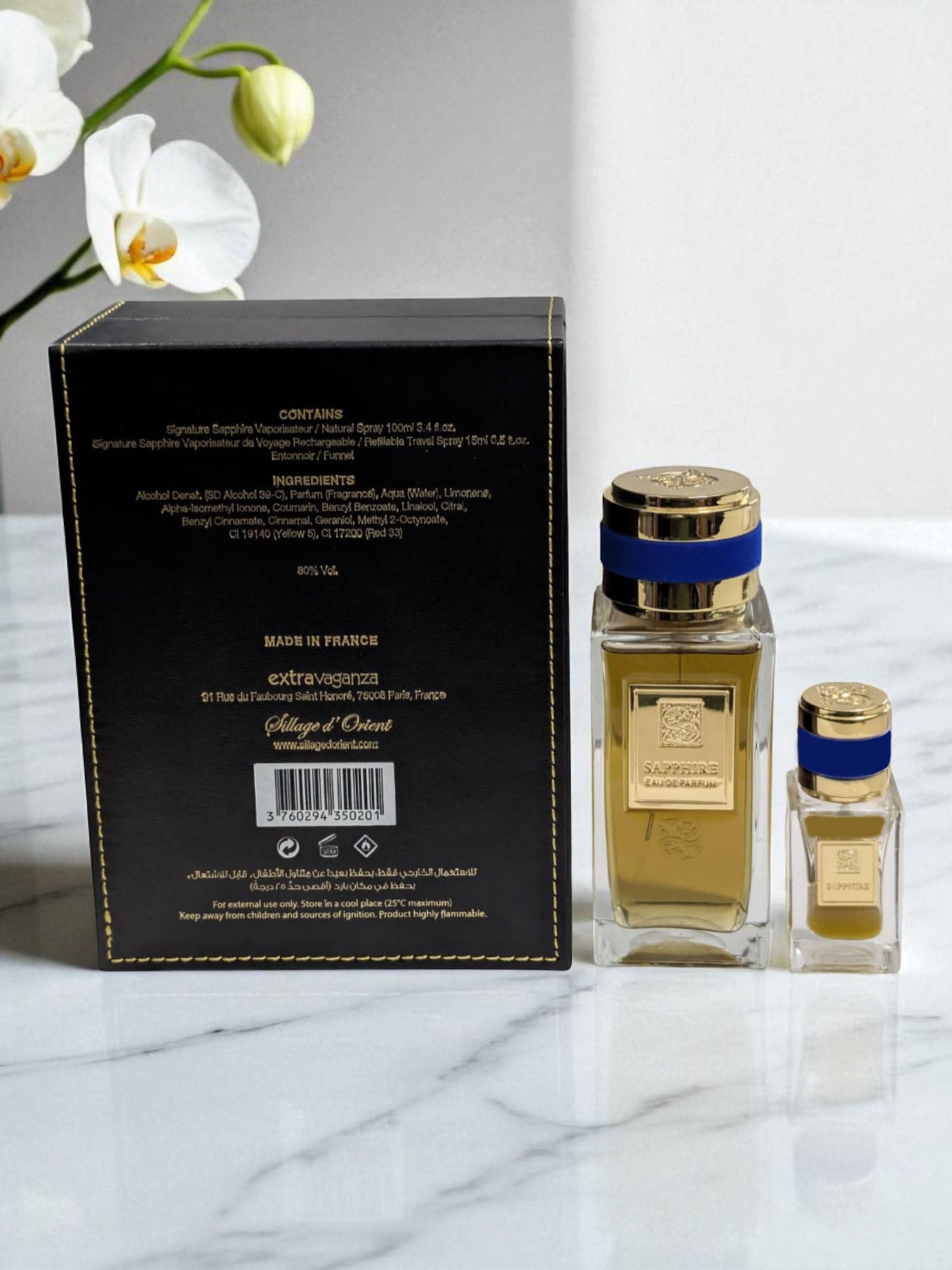 Indulge in an elegant sensory journey with this exquisite Sapphire Signature Gift Set from Sillage d'Orient, embodying the essence of luxury French perfumery. This unisex collection offers a bold, refined fragrance experience with notes of spice, leather, and warm woods.