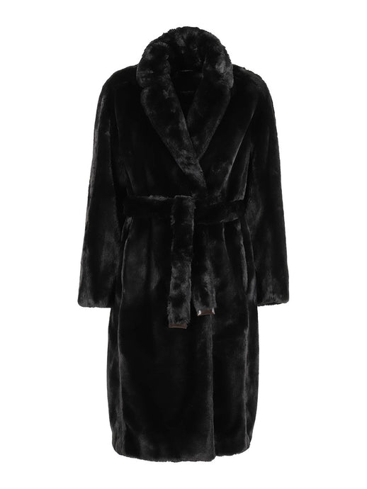 MAX MARA Women's Adorato Faux Fur Black Long Coat MSRP $1195