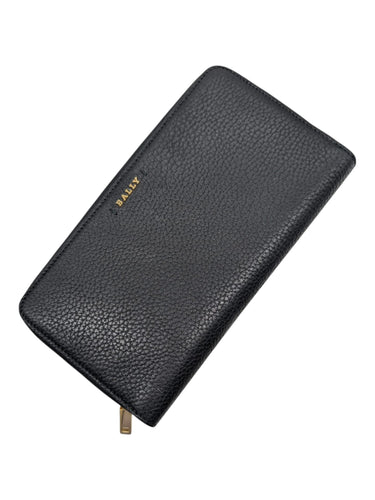 Bally Sevin 6219342 Black Zippered Long Wallet Calf Grained Leather MSRP $660