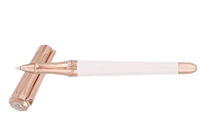 S T DUPONT DP462398 Liberté White Lacquer & Rose Gold Rollerball MSRP $695