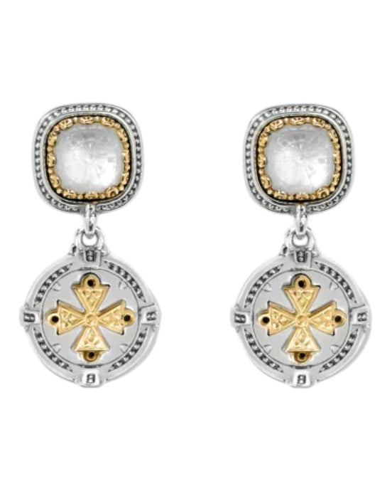 Konstantino Sterling Silver & 18K Yellow Gold Cross Earrings SKKJ700-130 MSRP $690