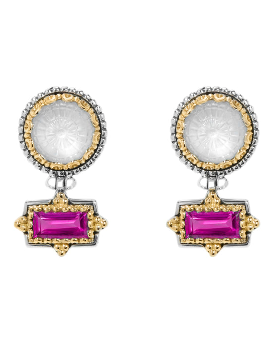 Konstantino Dome Sterling Silver 18K Gold & MOP Corundum Earrings SKKJ702-631 MSRP $1390