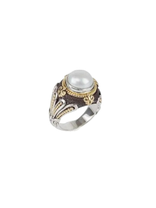 Konstantino Sterling Silver, 18K Gold and Pearl Ring DMK2099-122 S8 MSRP $800