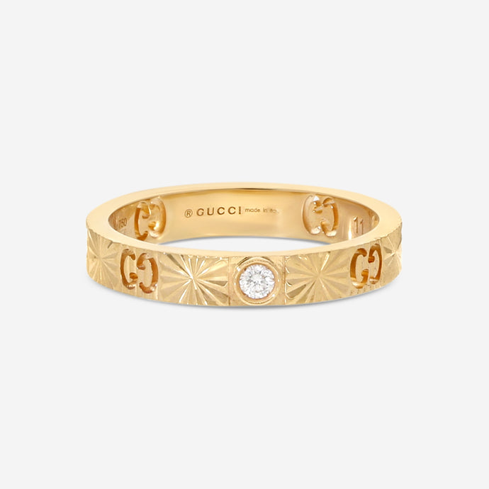 Gucci Icon Ring 18K Yellow Gold and Diamond Band Ring YBC7278920020 MSRP $1,610
