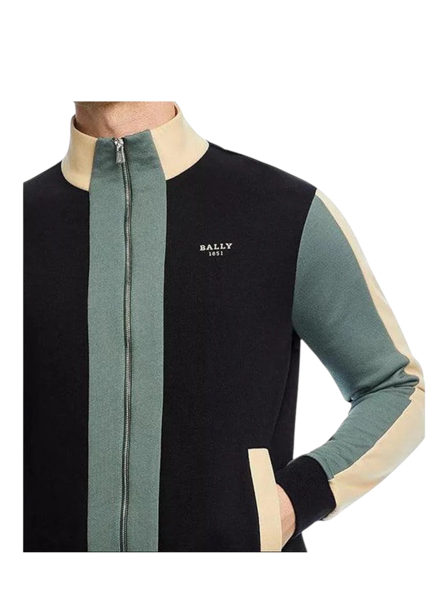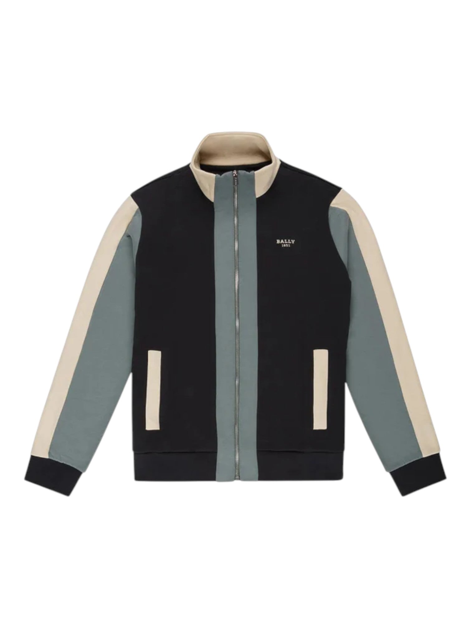 A modern expression of Bally's heritage sportswear, this full-zip track jacket is crafted in Portugal from a premium blend of organic cotton with a touch of nylon for enhanced structure and durability. Rendered in a refined black and sage palette, the design is finished with subtle Bally 1851 branding at the chest-an understated signature of the house.