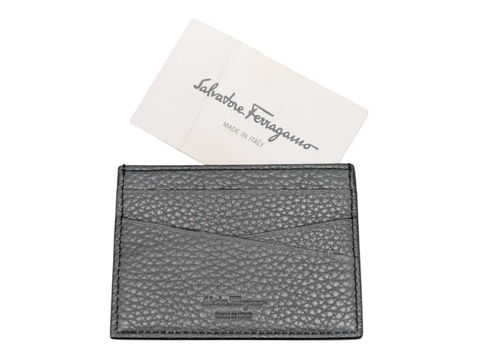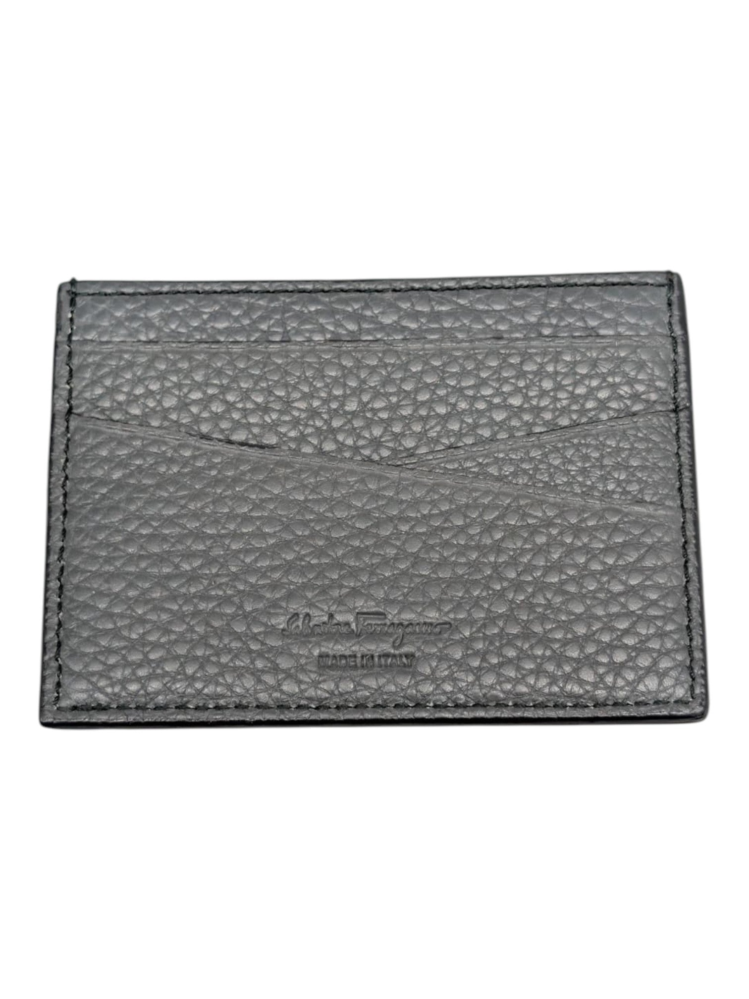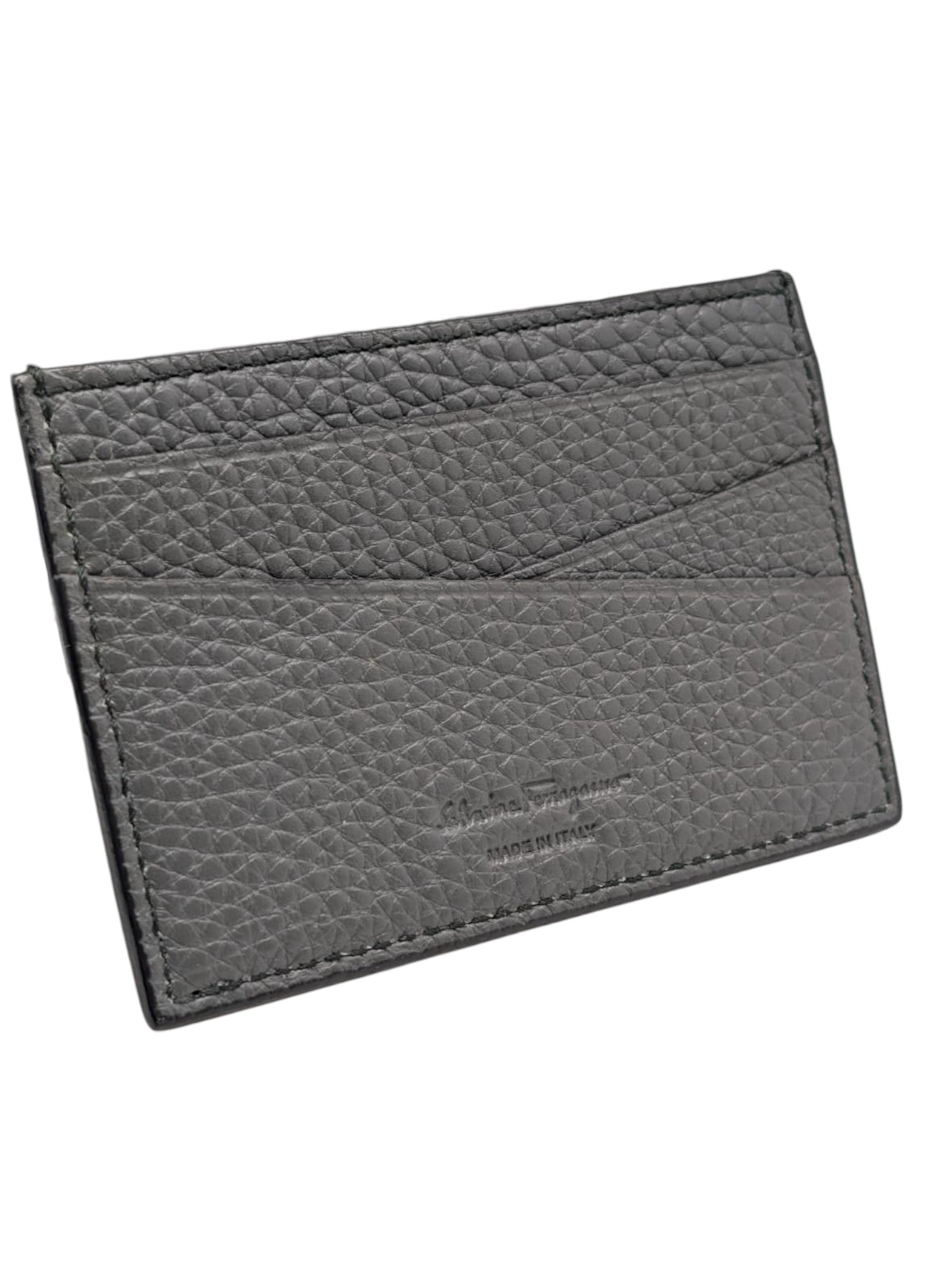 Sleek and minimal, this Salvatore Ferragamo Firenze card holder is crafted from soft Italian leather in a refined dark grey and navy color combination. Designed for everyday convenience, it features a slim profile with essential storage, finished with subtle Ferragamo logos on both the front and back.