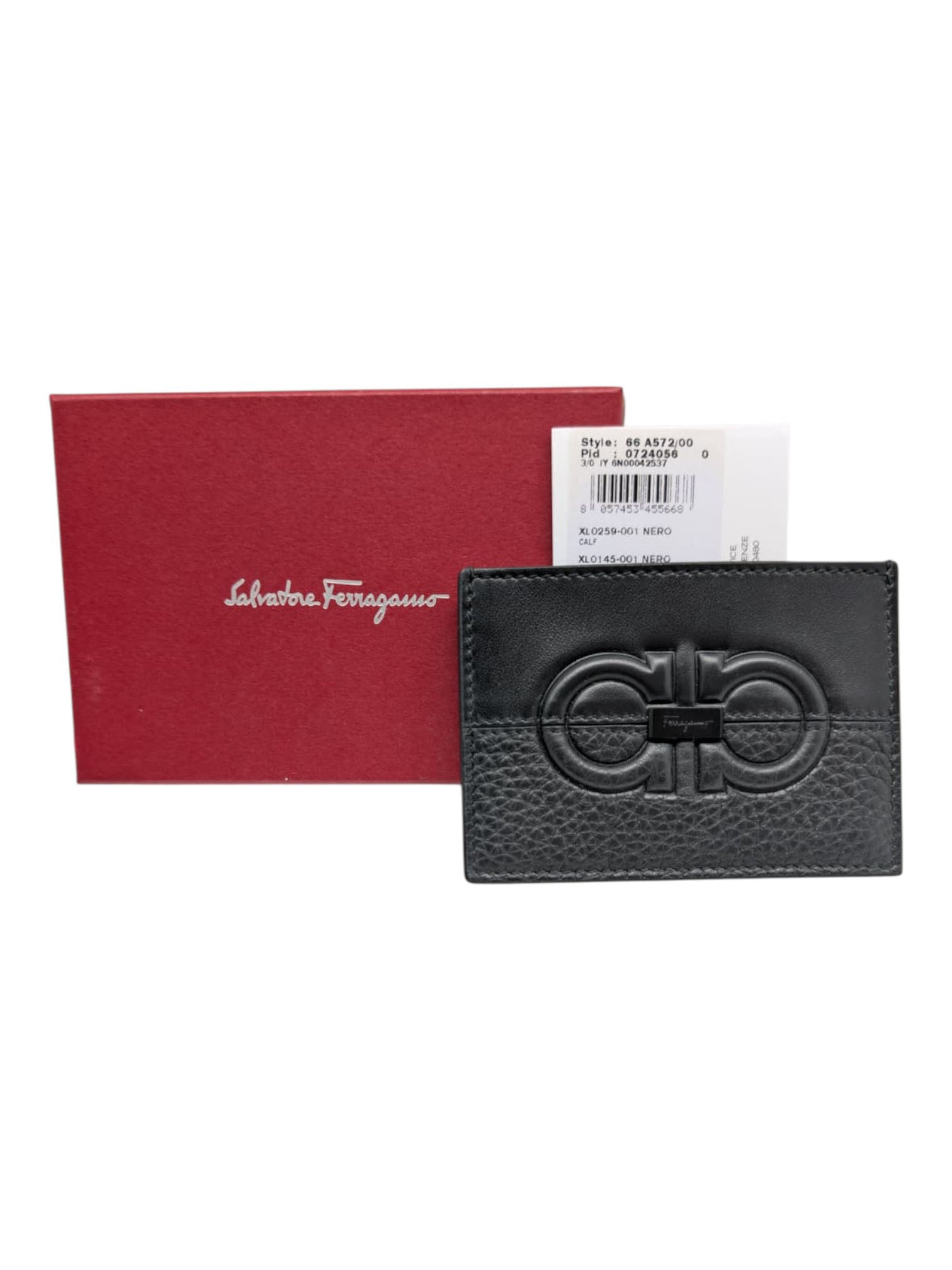 Salvatore Ferragamo Gancini Men's Black Card Holder - 724056