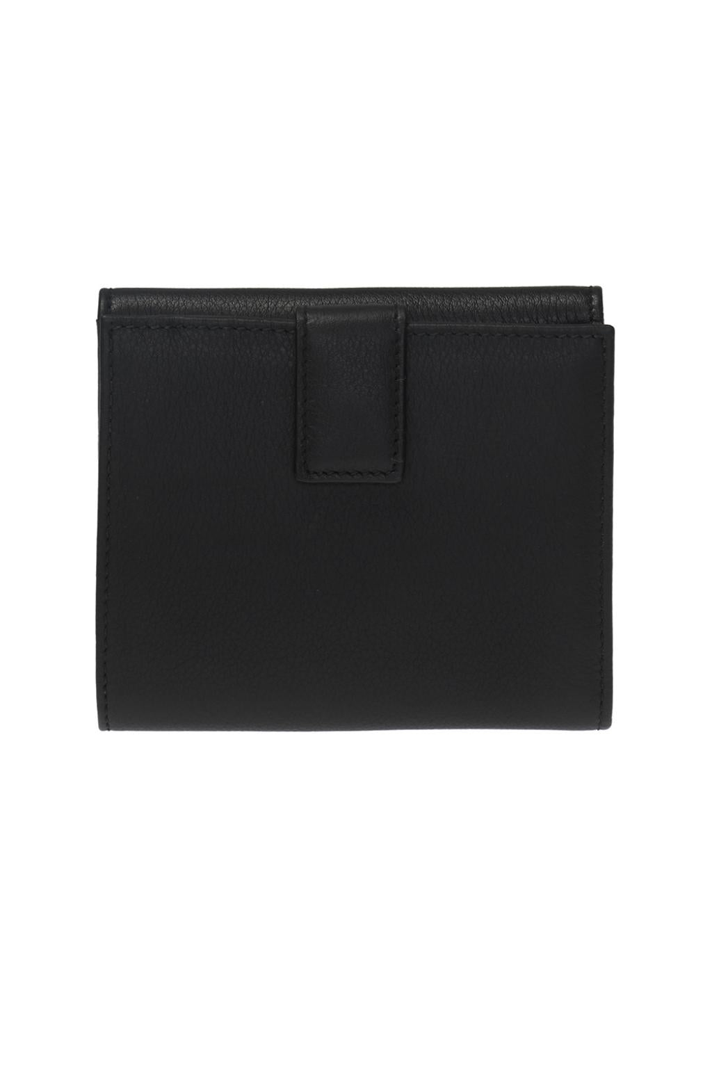 Timeless and refined, this Salvatore Ferragamo Gancini small wallet is expertly crafted in Italy from textured black calf leather. The compact silhouette is elevated by a decorative snap closure featuring the iconic Gancini motif, a signature emblem of the House.