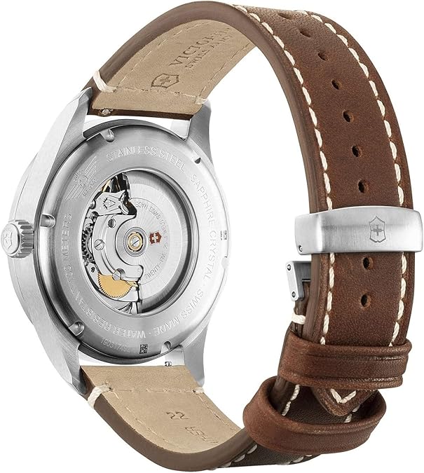 Victorinox 241887 Airboss Swiss Automatic Watch - 42mm Blue Dial with Brown Leather Strap