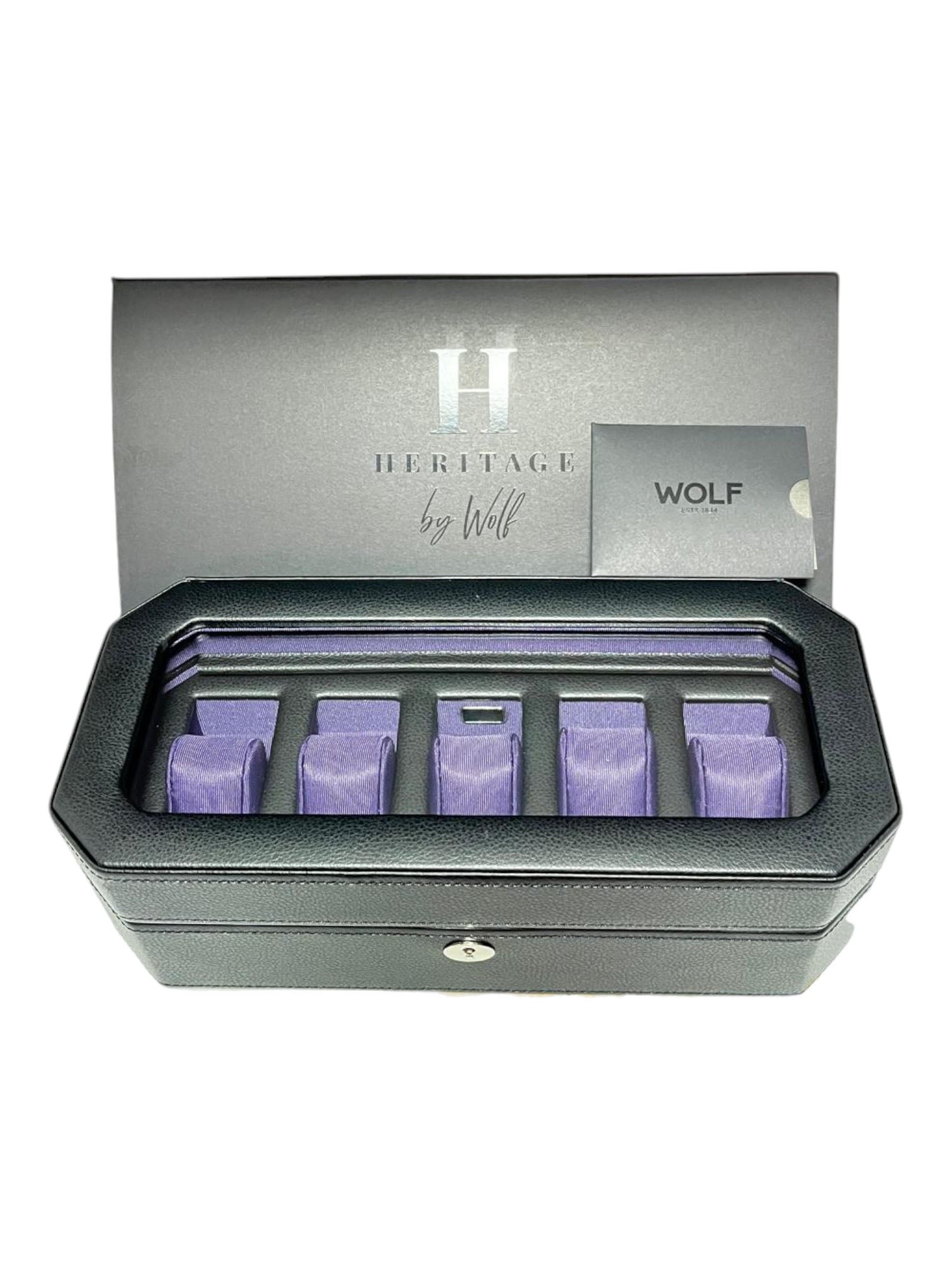 Wolf 458303 Windsor 5 Piece Watch Box in Black & Purple MSRP $215