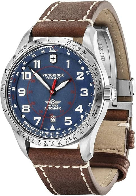 Victorinox Airboss 24887 Automatic Blue Dial Brown Leather Strap Watch 42mm