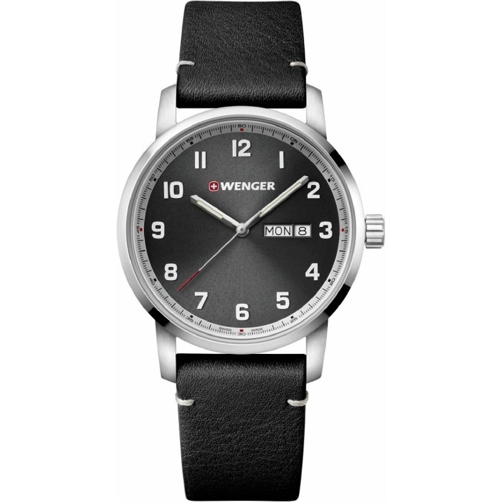 Wenger Swiss Army Men's 01.1541.116 Attitude Gray Dial Black Leather Strap Watch 42mm