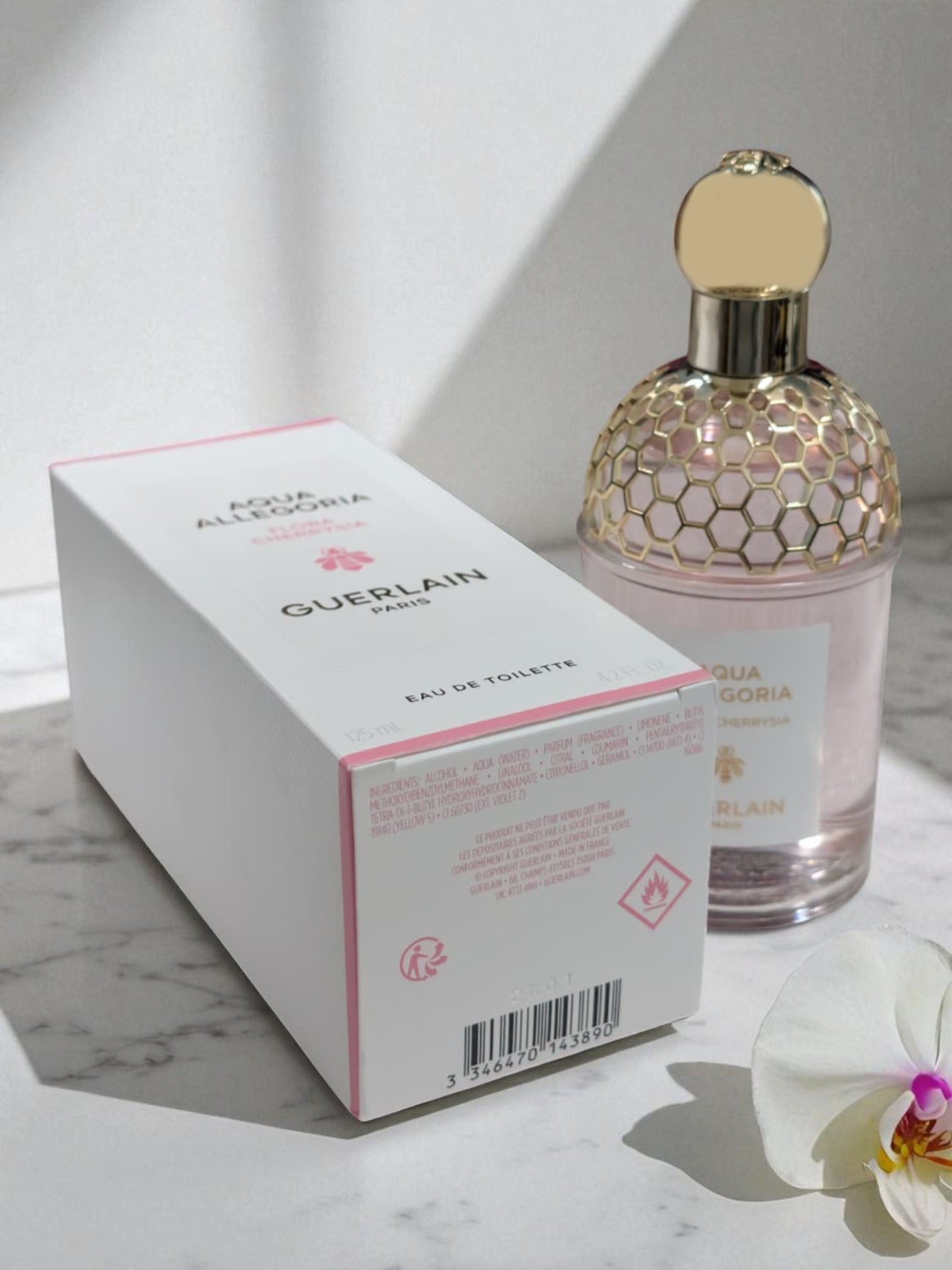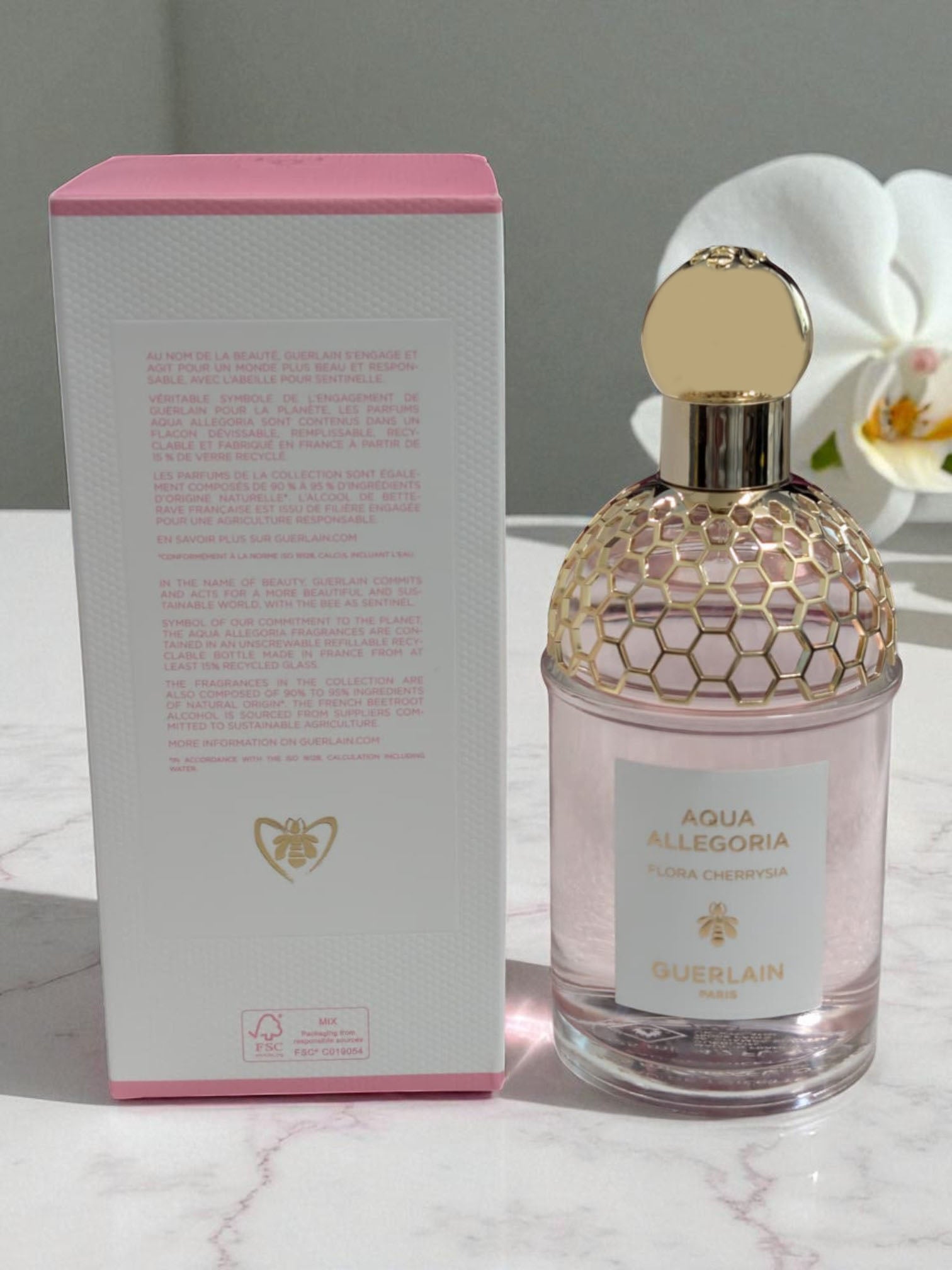 Delicate and refreshing, Aqua Allegoria Flora Cherrysia by Guerlain captures the soft beauty of cherry blossoms in full bloom. This 4.2 oz (125 ml) Eau de Toilette blends juicy nashi pear, cherry blossom, and a whisper of white musks, creating a luminous and poetic fragrance ideal for spring and summer.