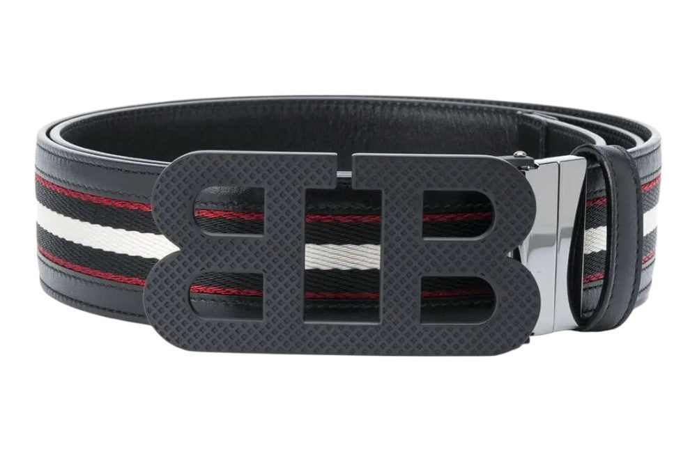 Elevate your style with the Bally Mirror B Reversible Leather Striped/Black Belt, designed for the modern man who values both style and versatility.