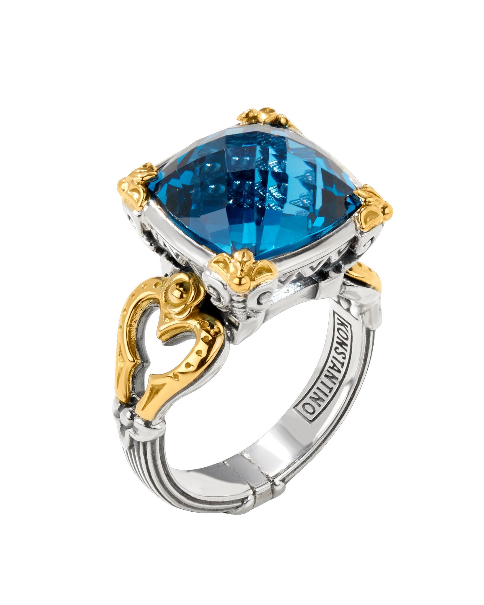 Konstantino Anthos ring. Made of Sterling Silver and 18k Yellow Gold Accents with Blue Spinel.